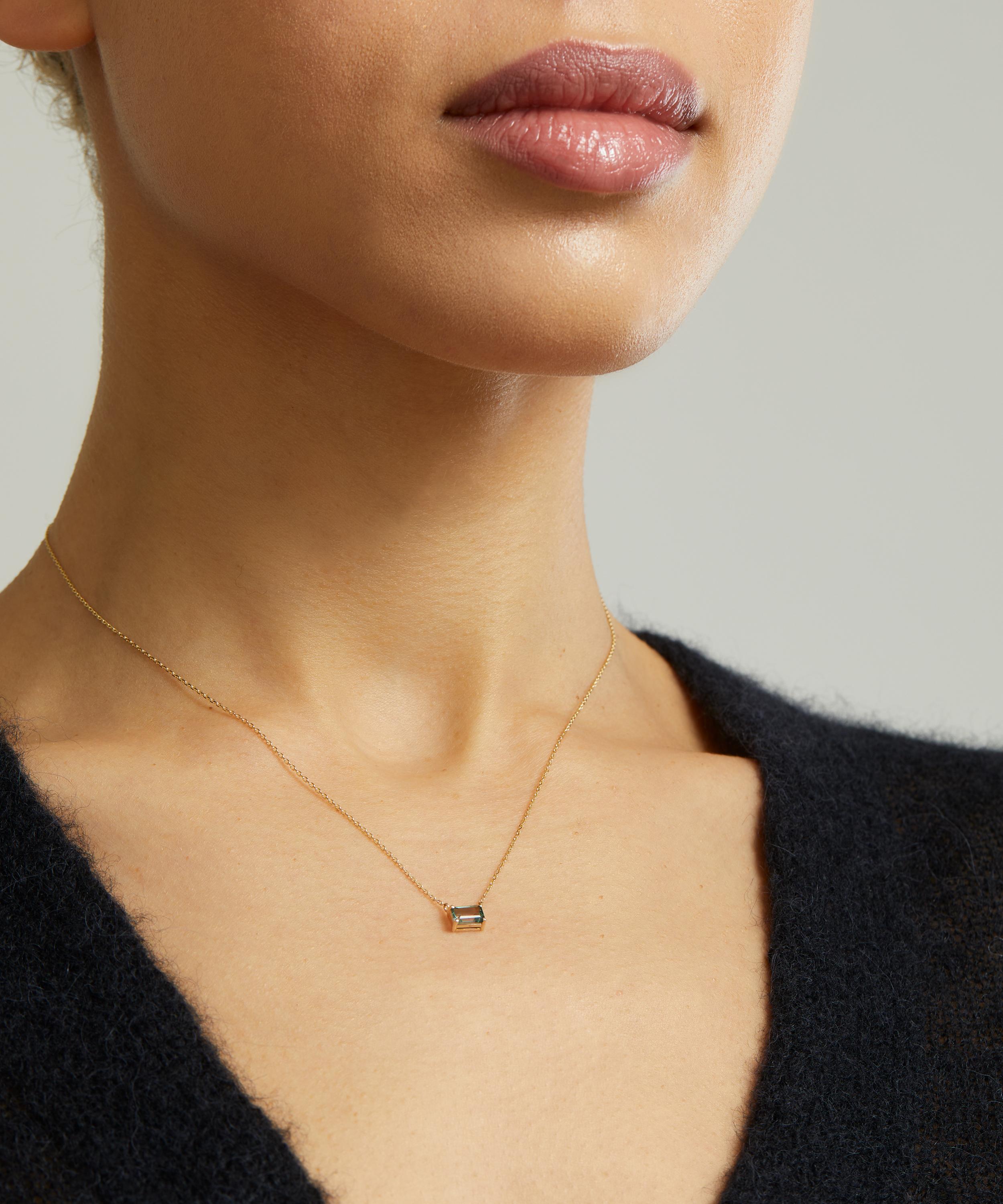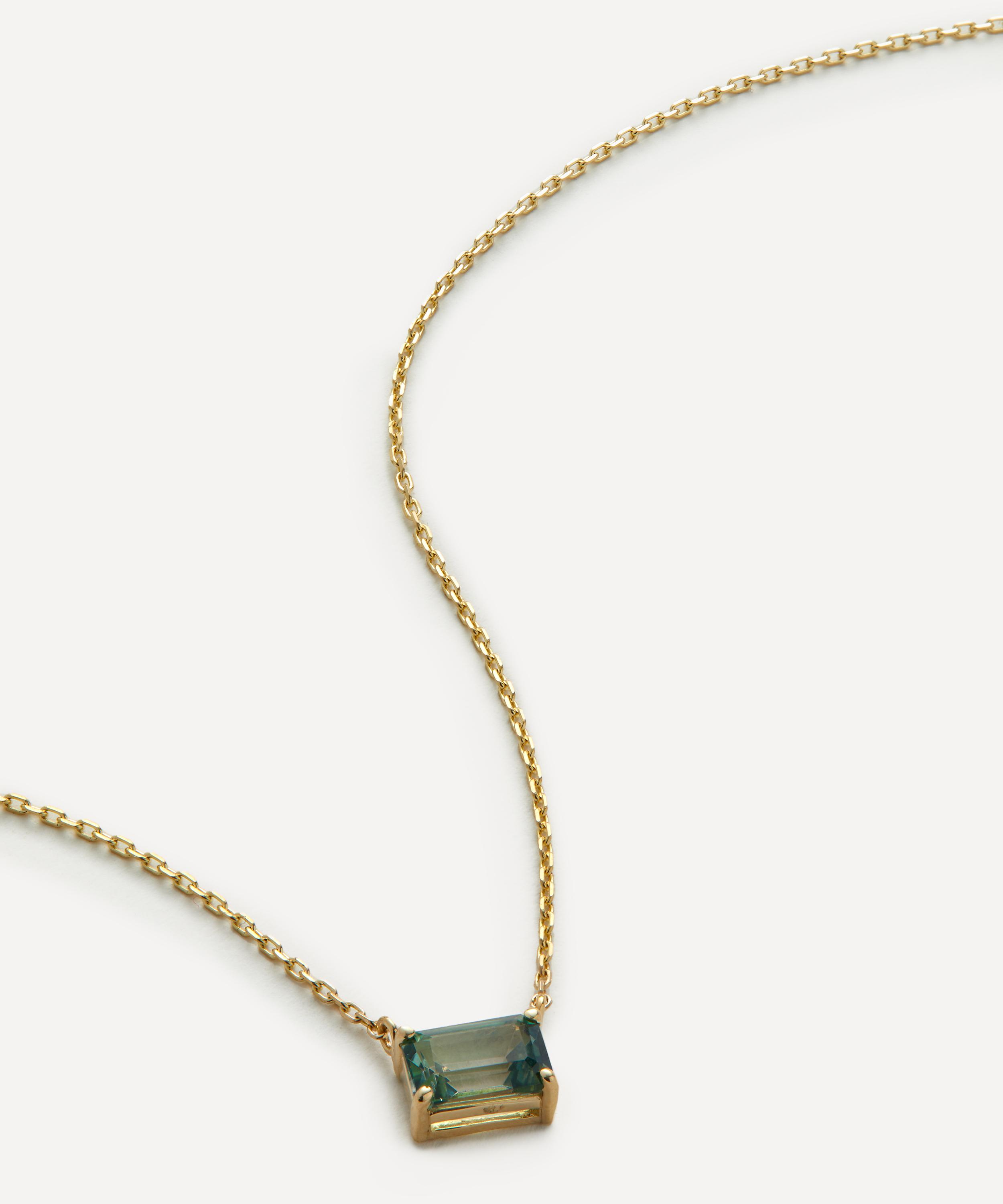 Exemplifying the designer’s contemporary approach to traditional jewellery designs, Suzanne Kalan presents this pendant necklace. Crafted from solid 14ct gold, it features a delicate link chain and emerald cut green envy topaz in a horizontal silhouette. Style it solo for a burst of colour day-to-day or stack with several of the designer's other glittering pieces for an unforgettable cocktail hour curation.