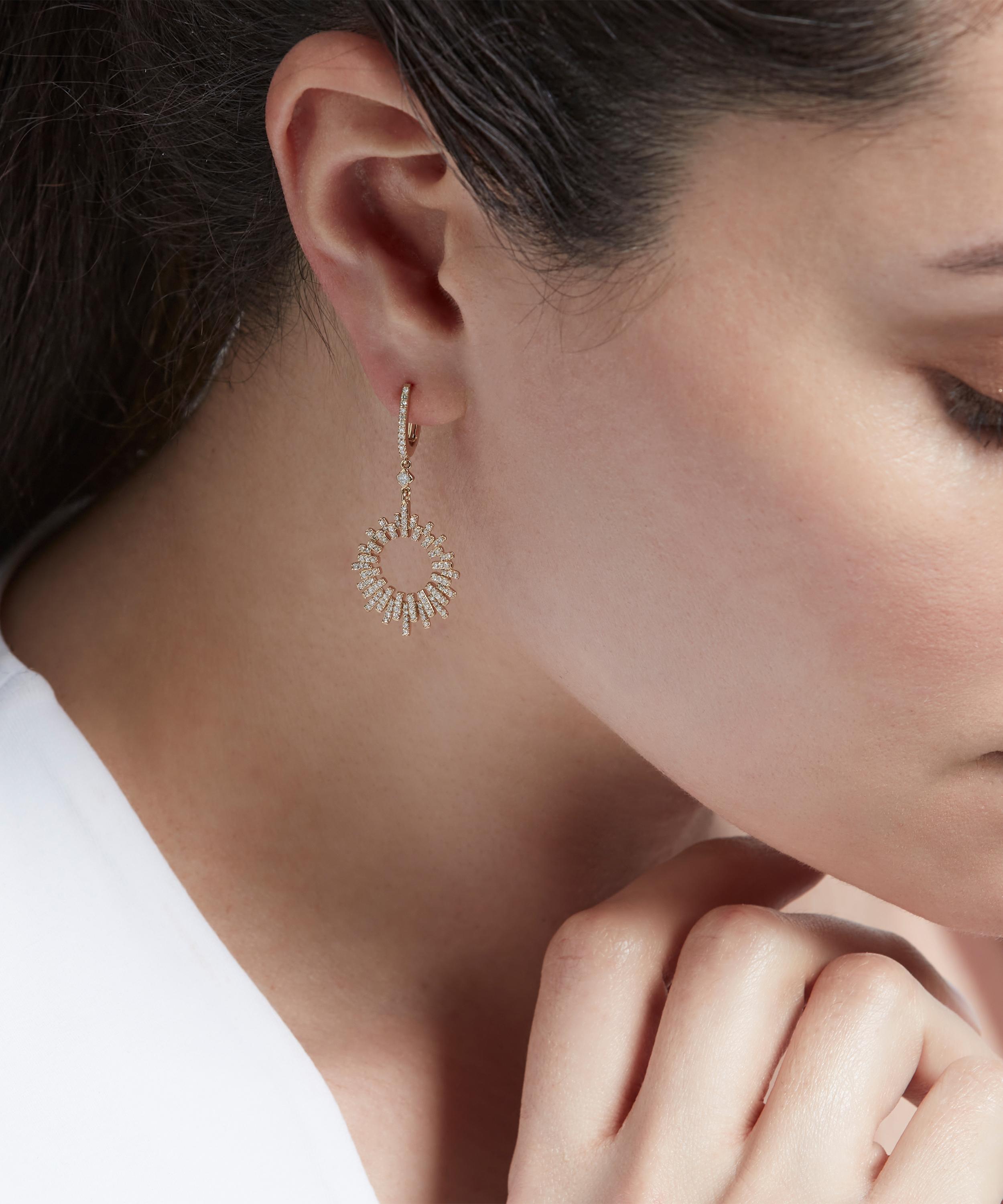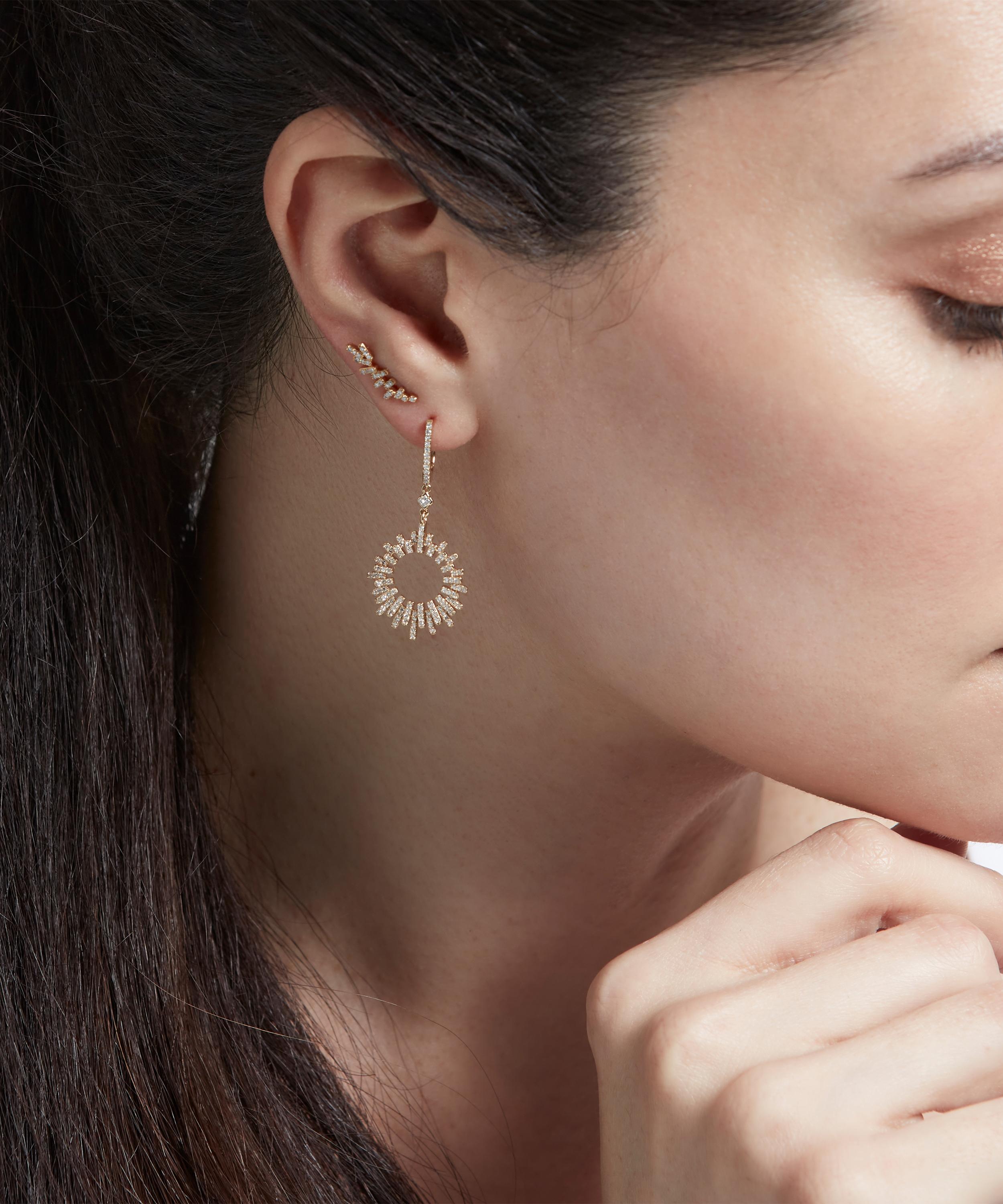 14ct Gold Comet Burst Diamond Hoop Earrings