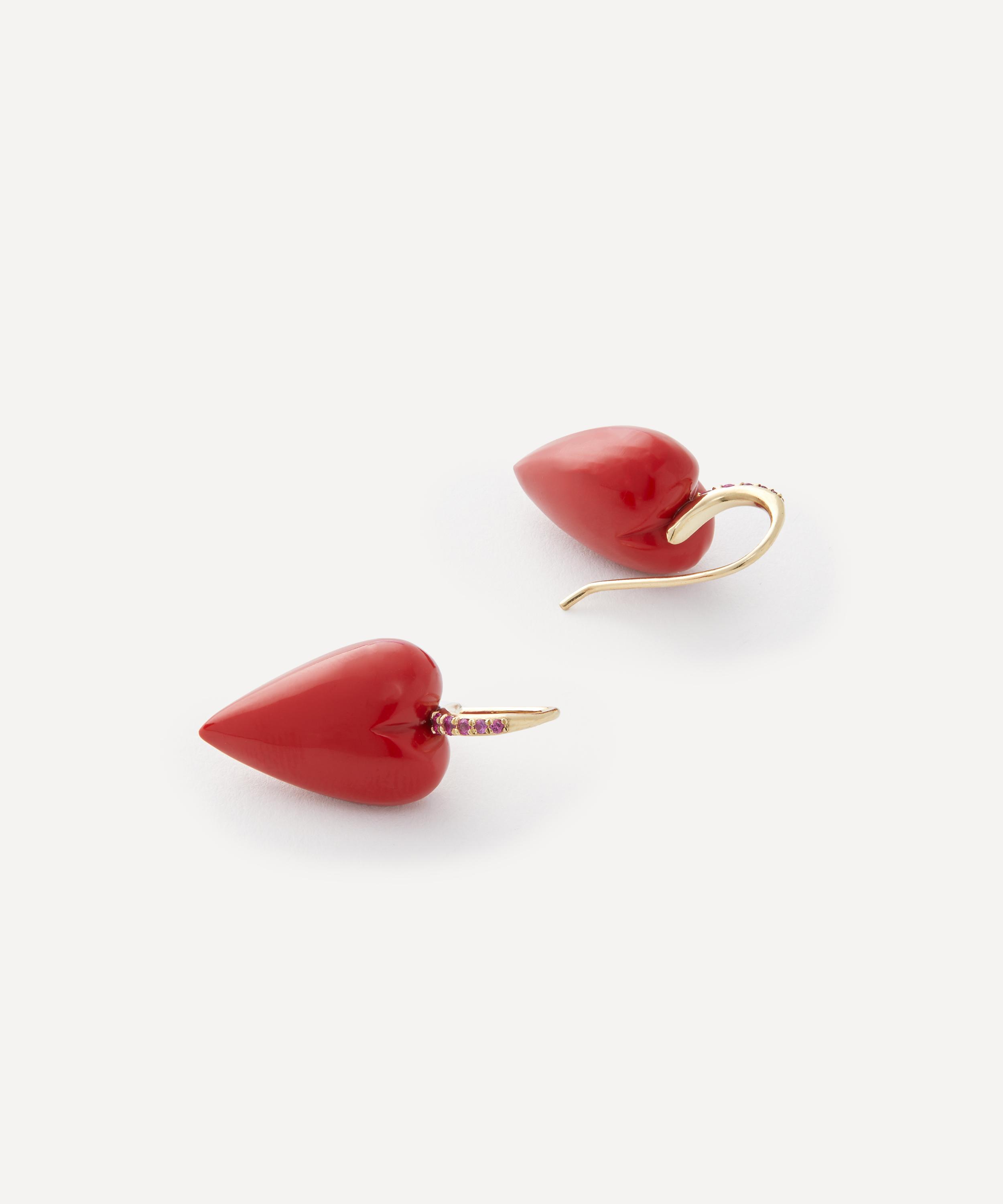 The Coral Heart drop earrings from Rachel Quinn perfectly capture the romantic surrealist narratives that run throughout the brand. Each earring features a sweet plump coral heart, hanging from a 14ct gold hook encrusted with pink sapphires. Try pairing them with one of the designer's whimsically creative bracelets or necklaces for a dreamy curation of wearable works of art.