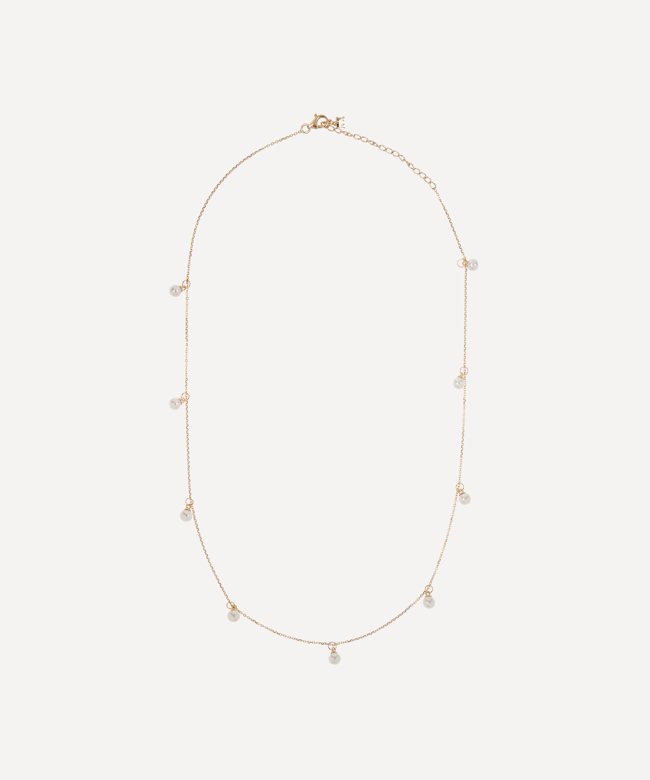 This pearl chain necklace by Mateo boasts a contemporary and elevated take on a classic jewellery staple. Crafted from 14ct gold, it’s characterised by a delicate cable chain adorned with white cultured pearls. Elegant and sophisticated, wear it as it is or team it with additional chains for a layered look.