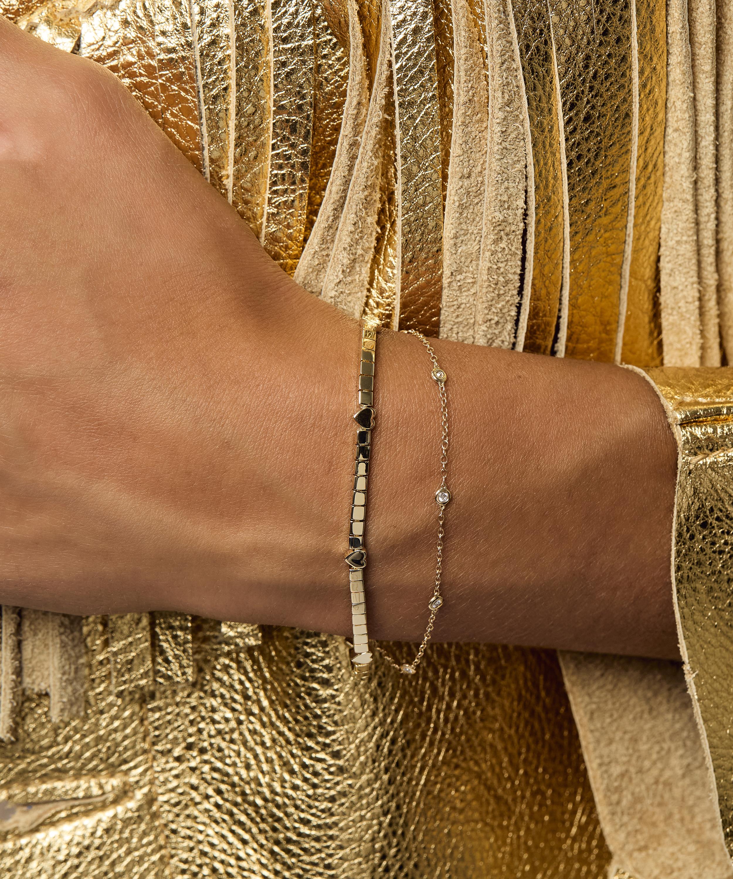 Enjoy a diamond for every day of the week with this sparkling bracelet from Roxanne First. Crafted from 14ct gold, its beautiful design features a classic trace chain adorned with seven bezel set diamonds. Wear solo for a minimal look, or add to a wrist stack.