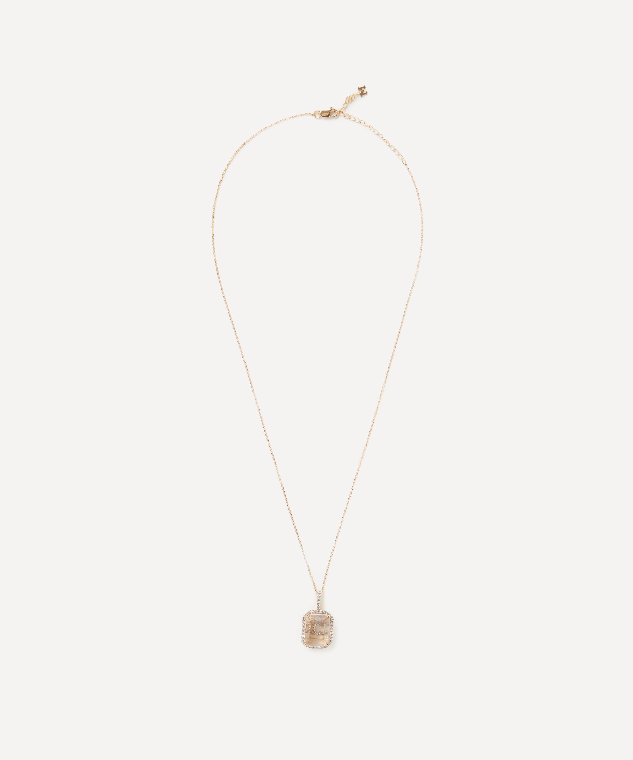 Add a personal touch to your everyday jewellery line-up with Mateo’s initial pendant necklace. Crafted from 14ct solid gold, this necklace features an octagon-shaped pendant adorned with an emerald-cut crystal quartz centre stone that’s surrounded by a sparkling diamond border, and a pave’ diamond “C” initial set underneath the gemstone.