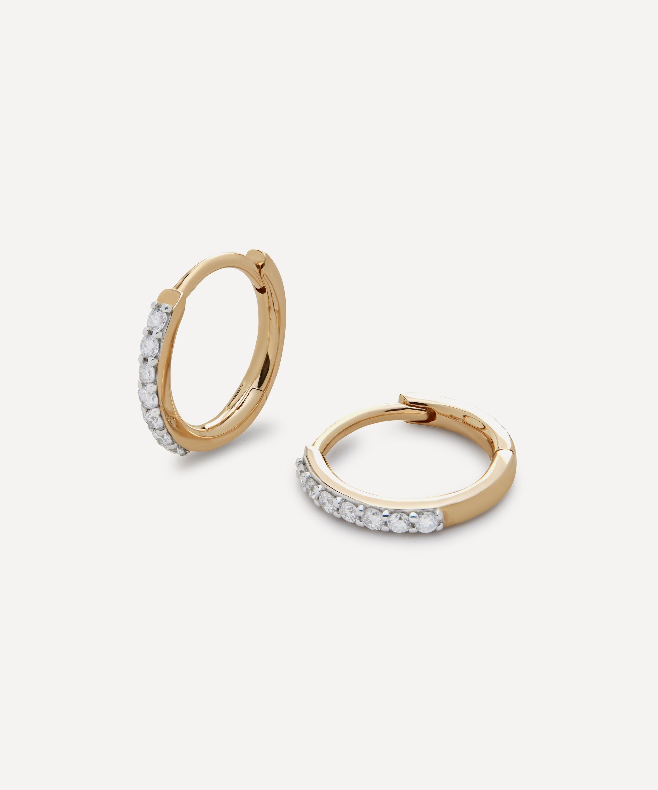 Evoking subtle glamour, these diamond huggie hoop earrings from Monica Vinader are perfect for elevating your everyday wear. Crafted from 14ct gold, each earring features a slim hoop, adorned with sparkling diamonds to the front. Stack with other hoops and studs, or wear them solo for a minimal look.