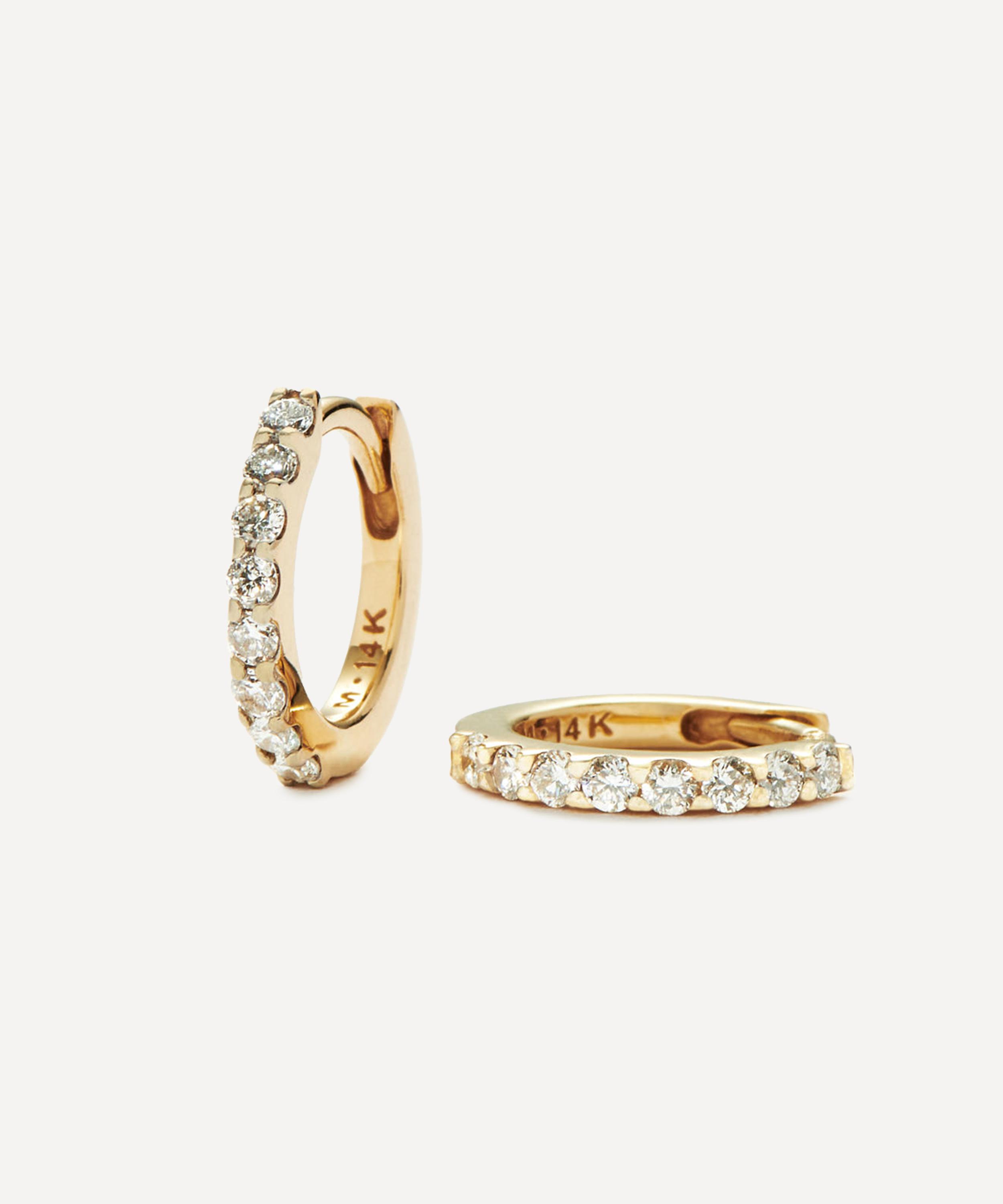14ct Gold Fine Classic Diamond Huggie Hoop Earrings