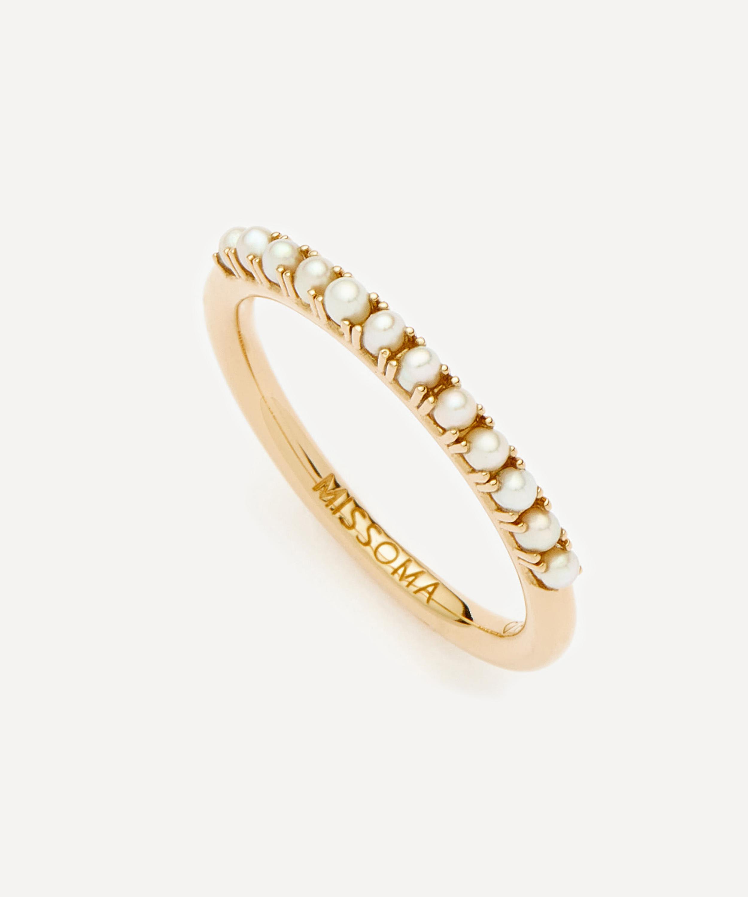 Make every day dressing feel effortless with this subtly elevating half eternity ring from Missoma. Crafted from solid 14ct gold, it features a slim, polished band embellished with opulent freshwater pearls, perfect for any kind of ring stack curation. Style it with other rings or wear solo for a minimal look.
