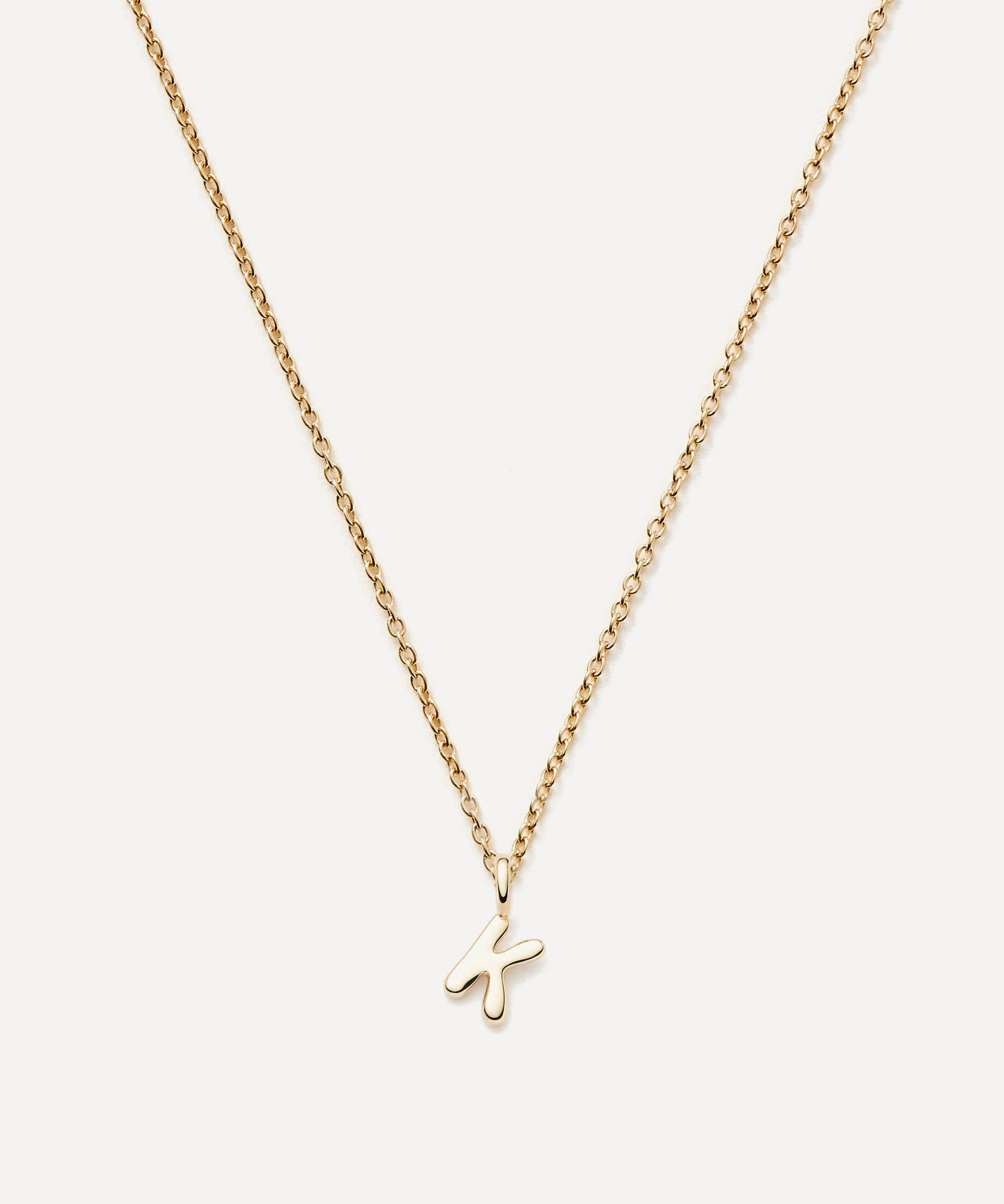 Put a unique spin on your everyday jewellery curation with the Fine Initial Mini Pendant Necklace from Missoma. Rendered in solid 14ct gold, it features a delicate trace chain adorned with a mini ‘K’ letter pendant in a soft hand-drawn font. Perfect for layering, this elegant and versatile piece boasts the ultimate personalised gift or keep it for yourself.