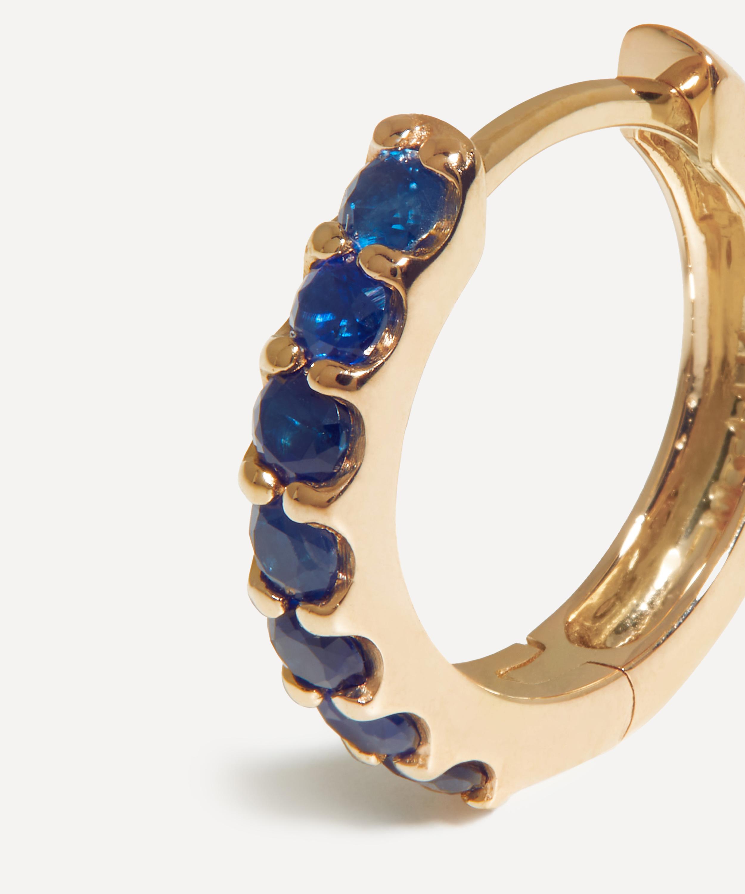 Make every day dressing feel effortless with these subtly elevating huggie hoop earrings from Missoma. Handcrafted from solid 14ct gold, each earring features a sleek, polished hoop lined with deep blue sapphires, perfect for any kind of ear stack curation. Style them with other gold earrings or wear solo for a minimal look.