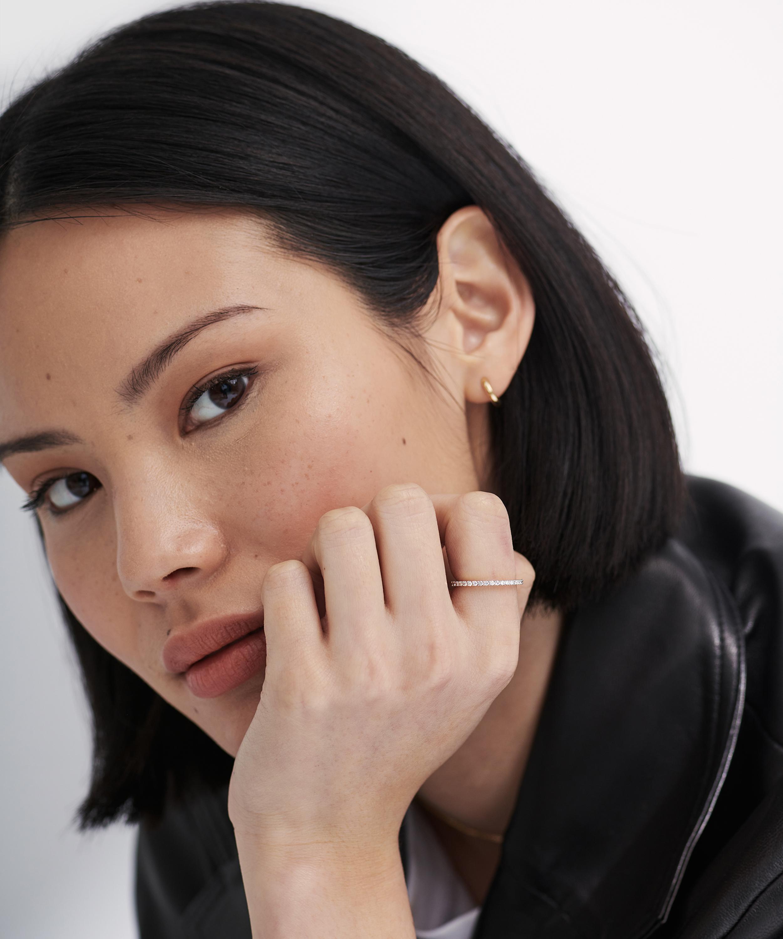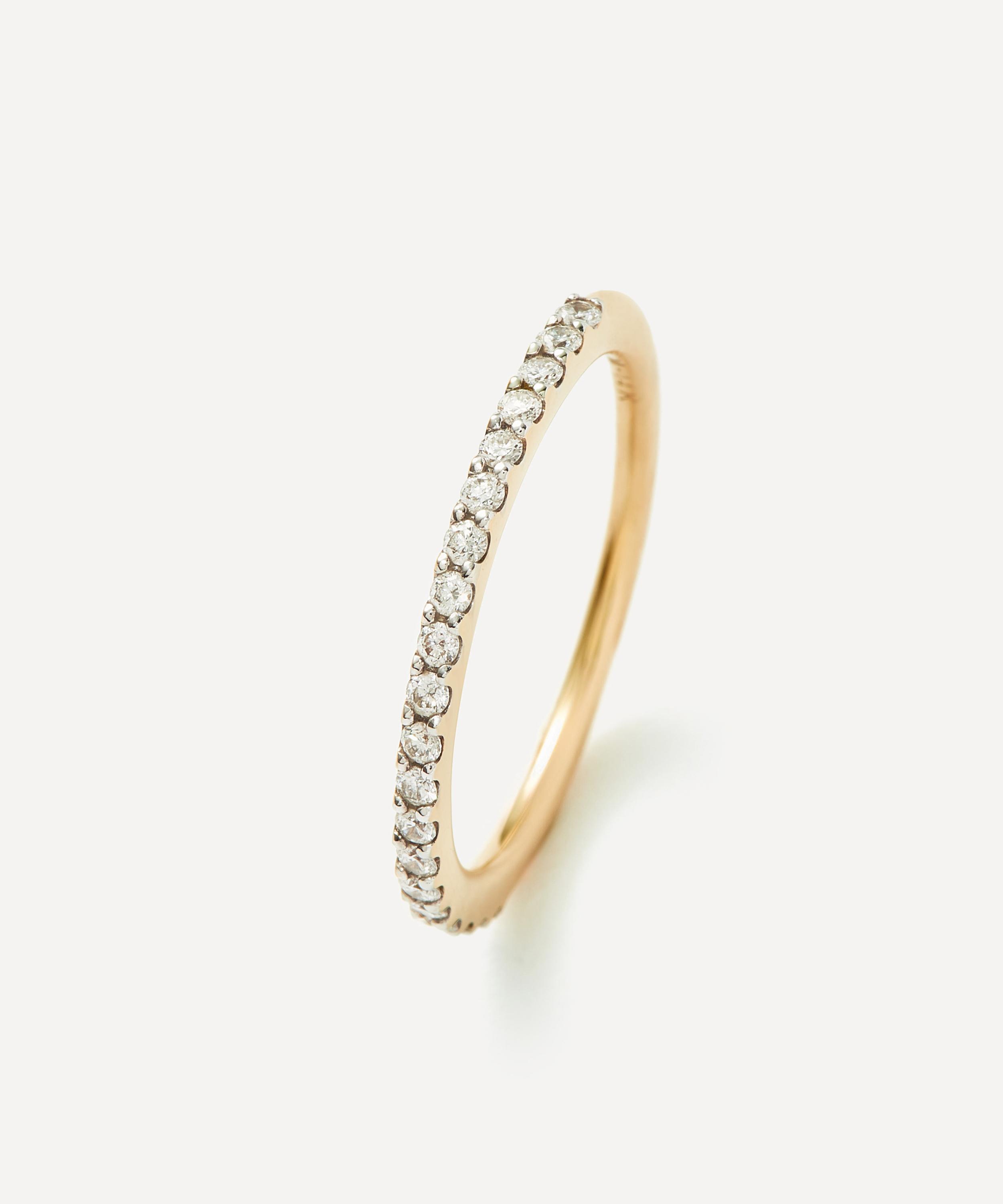 Perfect for stacking or styling alone, Missoma presents this timeless half eternity ring. Crafted from solid 14ct gold, this elegant forever piece features a simple, slim silhouette lined with sparkling white diamonds.