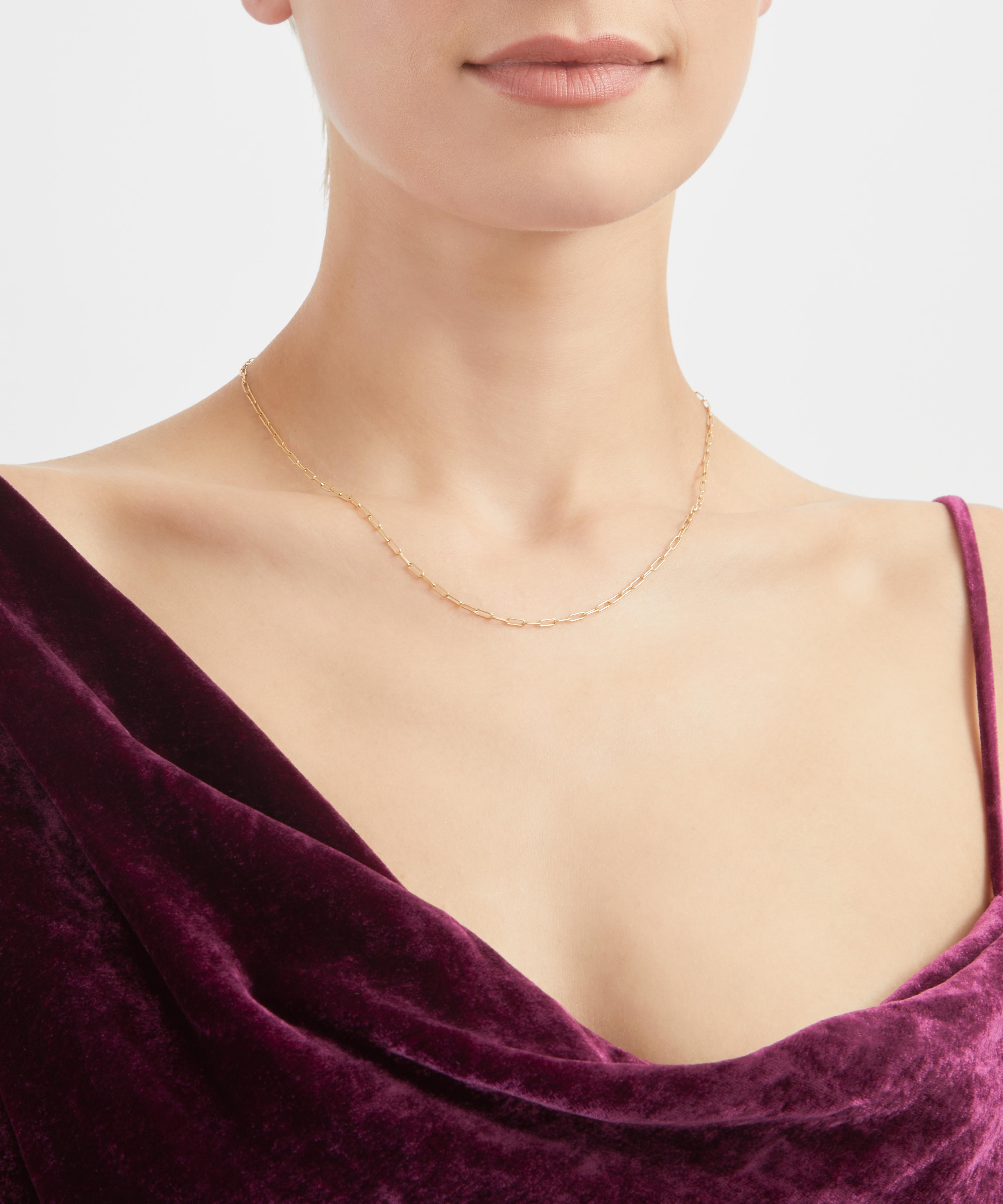Create your own bespoke necklace stack with the Flat Link chain necklace from Sophie Joanne. Crafted by skilled artisans from solid 14ct gold, it features a string of flat paperclip links, perfect for layering with other necklaces, or for pairing with one of the brand’s delectable Flower Pendants.
