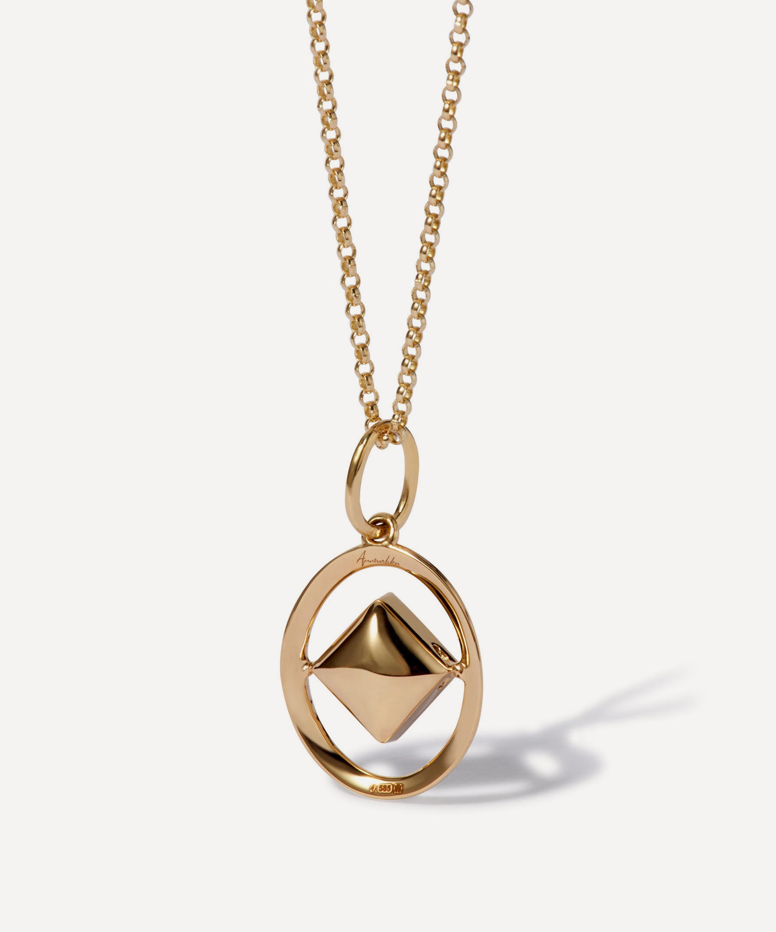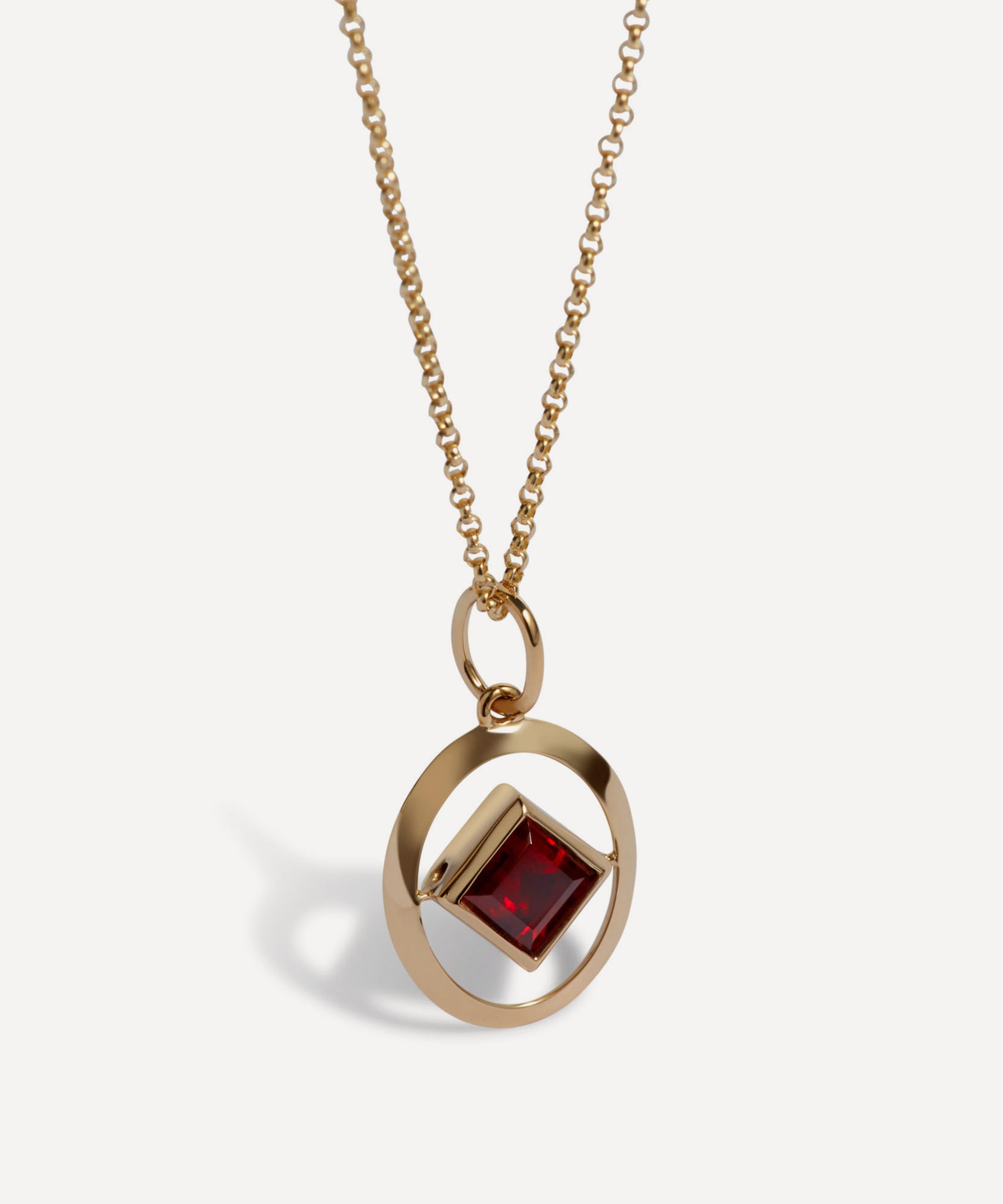 Add a personal touch to your daily jewellery line-up with Annoushka’s birthstone pendant necklace. Crafted from 14ct gold, this pendant features an oval silhouette with open metal work and a diamond-shaped inner adorned with January’s birthstone, the garnet. Designed to be layered with the brand’s Zodiac and Initial pendants, it offers a sentimental token to treasure forever.