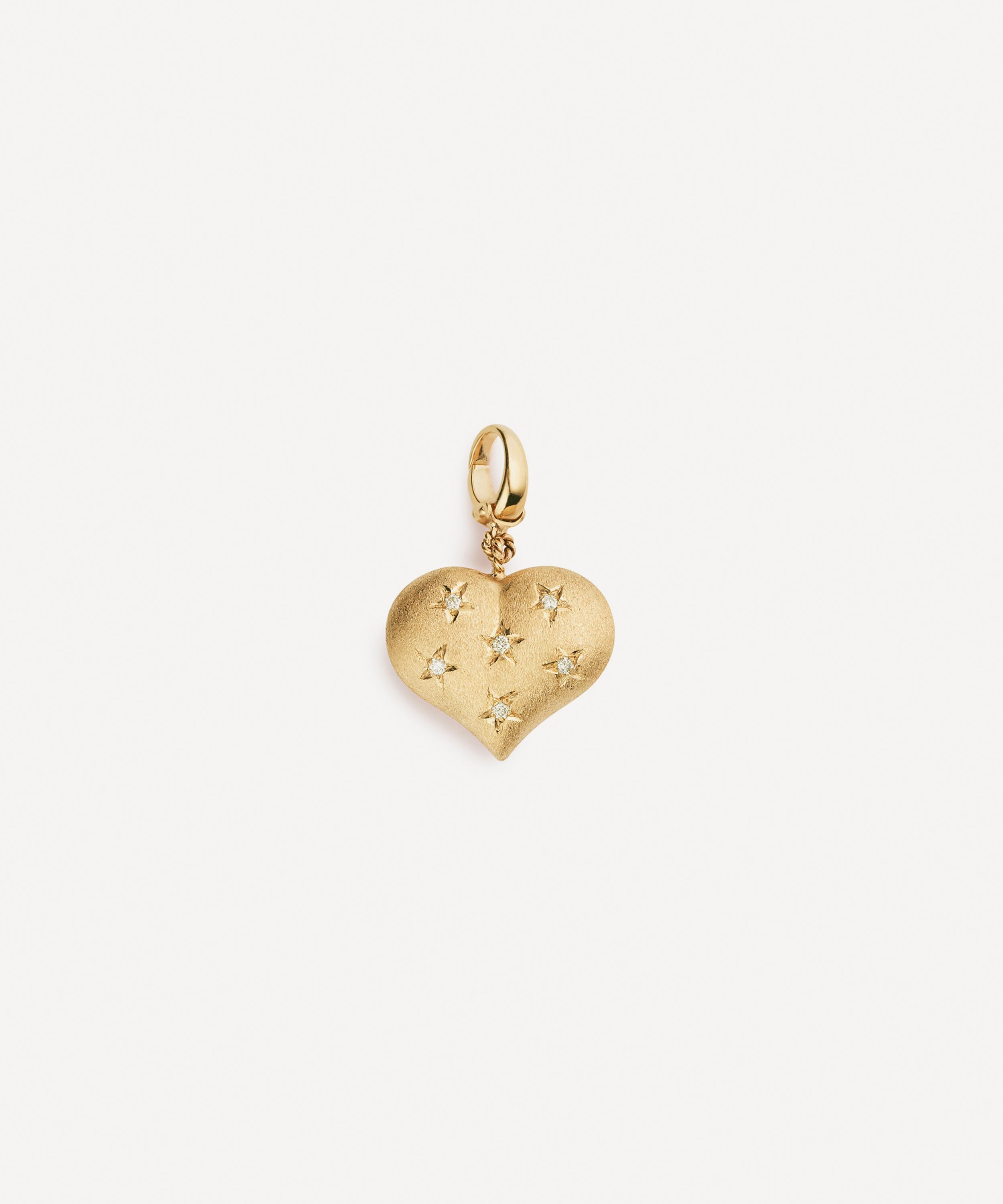 Adorn a plain necklace or charm bracelet with this intricate diamond charm from Marie Lichtenberg. Crafted from 14ct gold, this charm features a stylised heart design with diamond set star accents and gold bail. Complete in a matte, brushed coco finish, it will effortlessly brighten up any jewellery edit with its playful spirit.