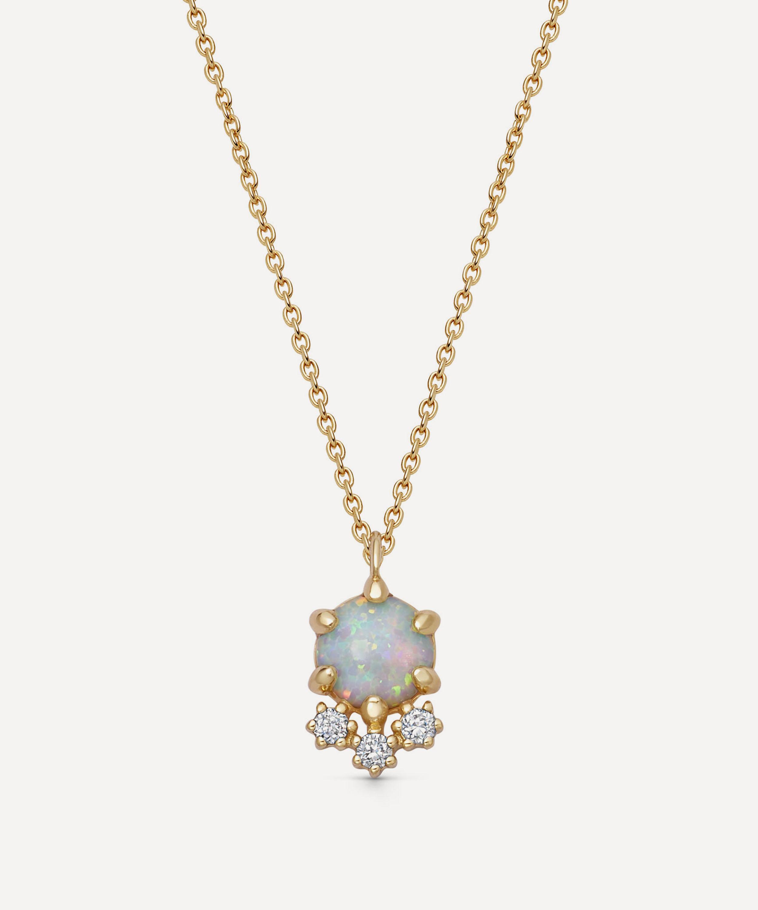14ct Gold Interstellar Opal and Lab-Grown Diamond Cluster Necklace
