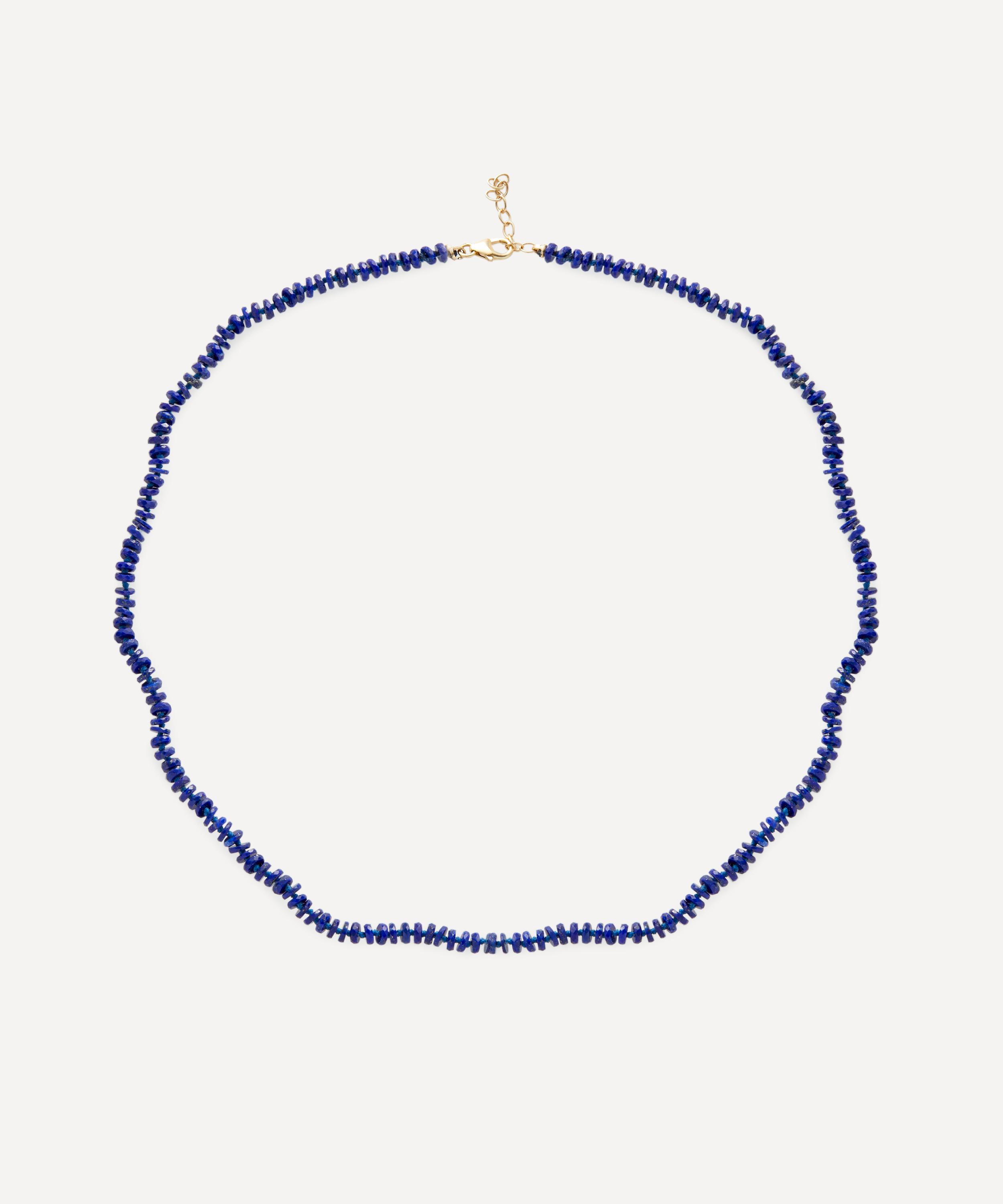 Add a charming spin to your everyday curation with this colourful bead necklace from Andrea Fohrman. Crafted from 14ct gold, it features a single lapis silk thread strung with Lapis tire beads. Try layering it with several contrasting beaded styles from the collection for a richly coloured curation that's guaranteed to brighten up any outfit.