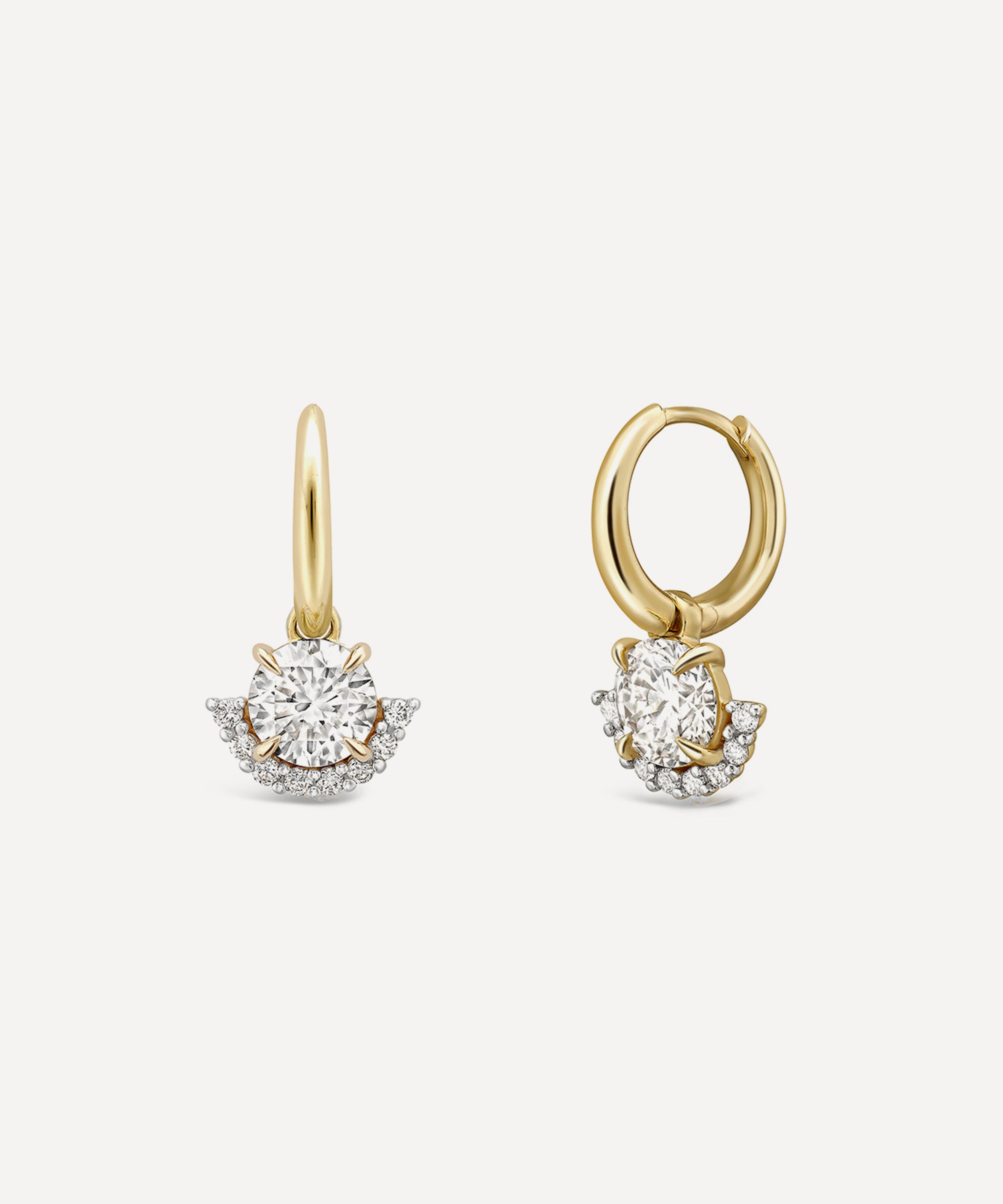 Look effortlessly striking and accelerate the impact of your outfit with the elevating Libby drop earrings from Dinny Hall. Handcrafted from 14ct gold, each earring features a polished huggie hoop, embellished with a claw-set diamond drop cradled by sparkling pave diamonds. Style them solo or stacked.
