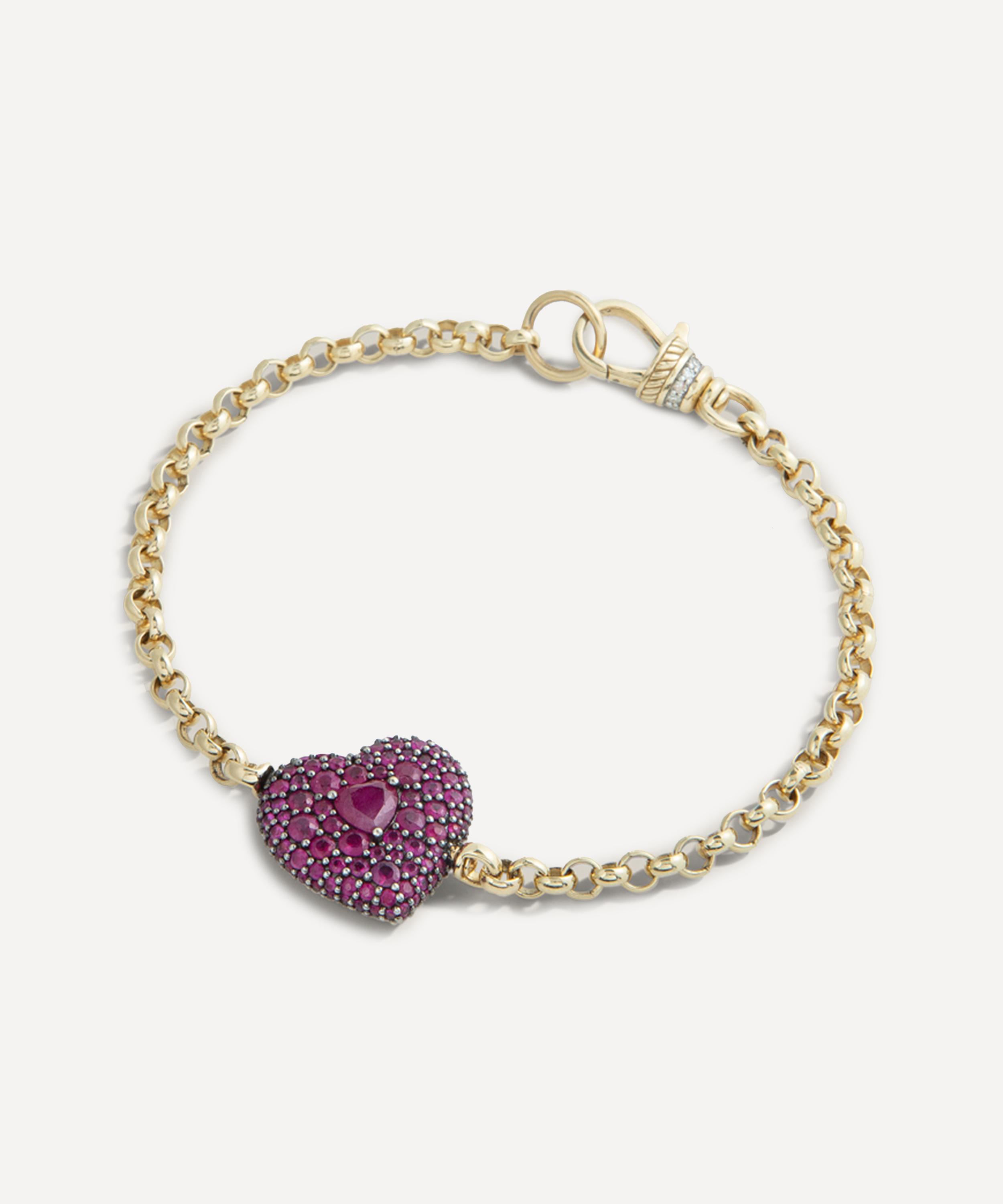 Crafted from 14ct gold, it’s centred around a heart-shaped pendant adorned with a Victorian set ruby pavé atop antique finish black rhodium. Finished with a classic belcher chain, characterised by evenly sized round links, it references and celebrates a vintage silhouette with a modern sentiment, making it a versatile addition to any jewellery collection. Weather worn alone or layered, it will instantly draw attention to both casual and formal looks with its subtle allure.