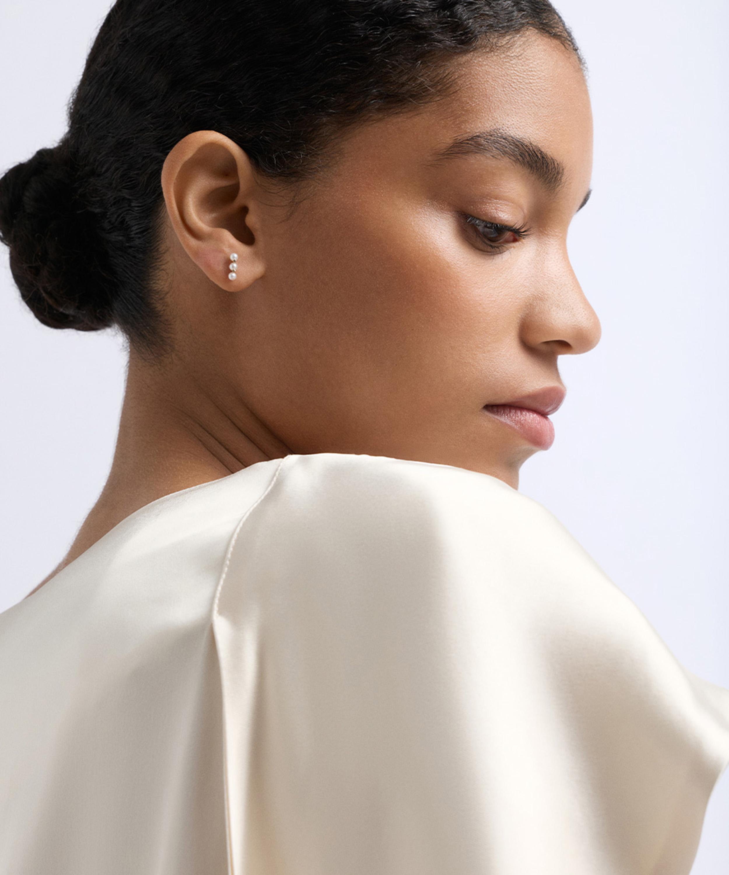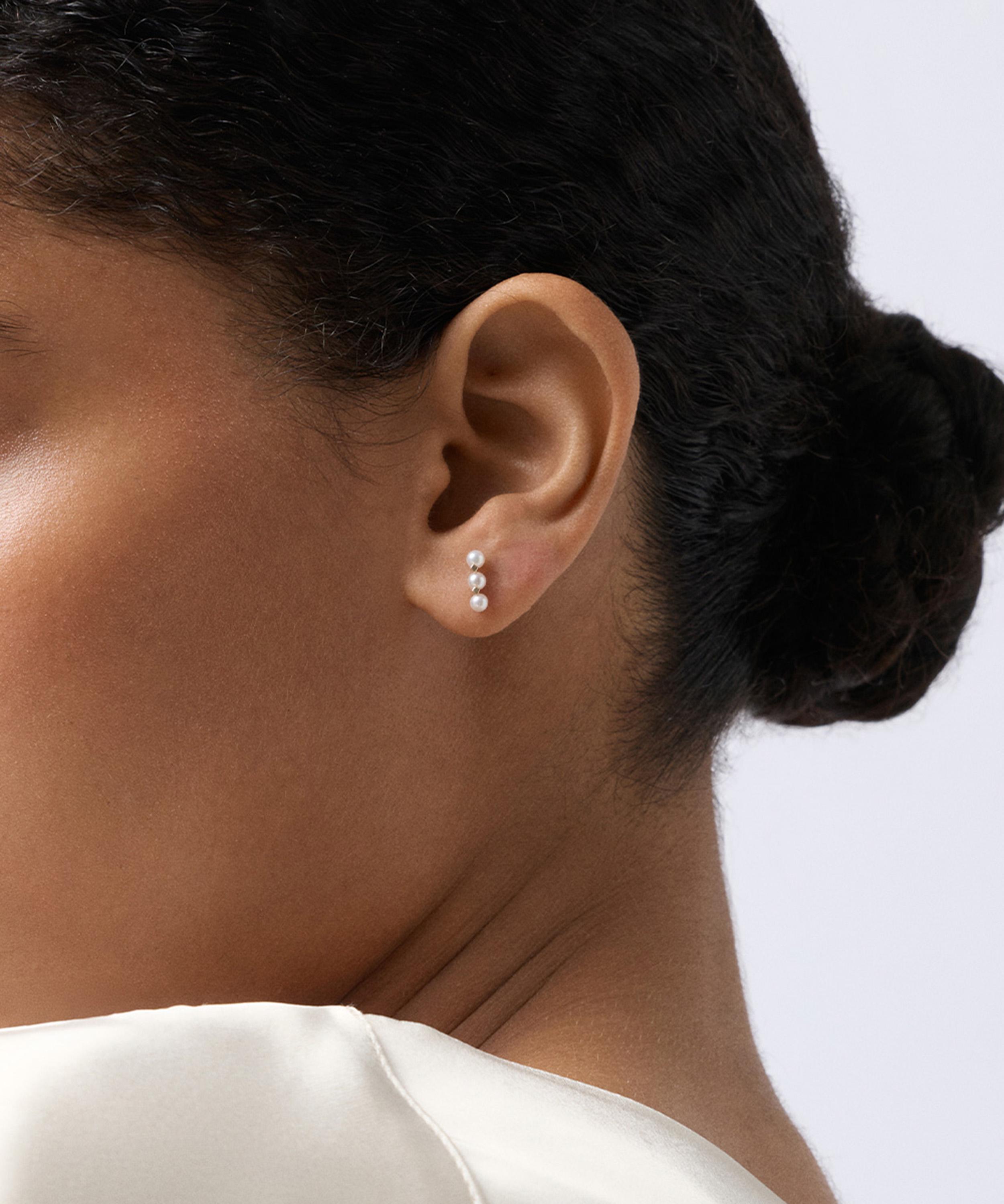 Rendered in solid 14ct gold, each stud features a bar design set with three luminous freshwater pearls, creating a design that feels both timeless and modern. Offering endless styling options, perfect for both day and evening looks, wear yours alone for understated elegance or style as part of a curated ear stack for a contemporary finish.