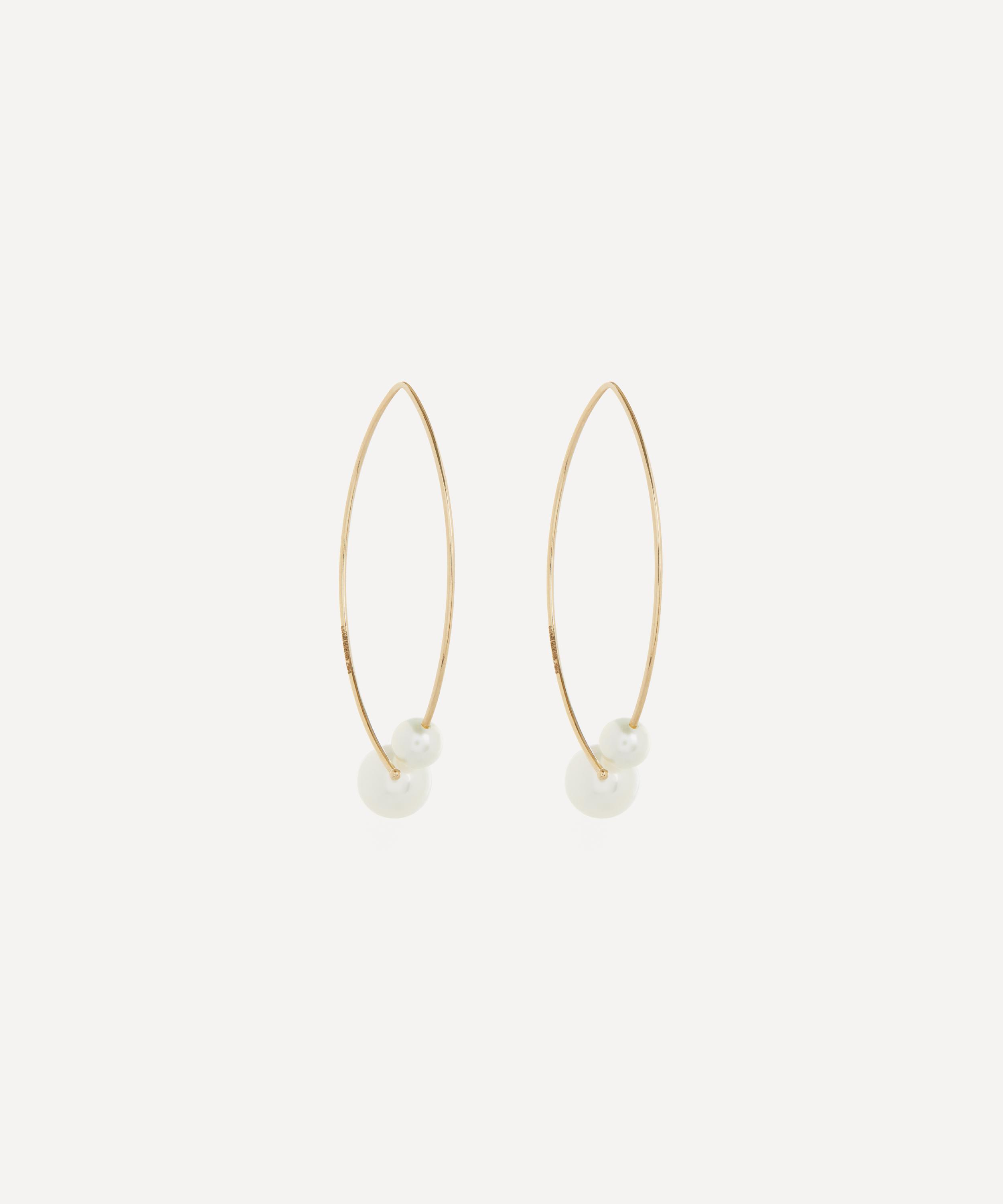 Epitomising the designer's effortlessly understated aesthetic, each of these earrings features a sweeping 14 carat gold wire that curves down from both sides of the ear, creating an open marquise silhouette with two mismatched Akoya pearls at the front. A contemporary take on classic pearl jewellery, pair them with pulled-back hair and an open neckline to add a hint of drama to your next evening look.