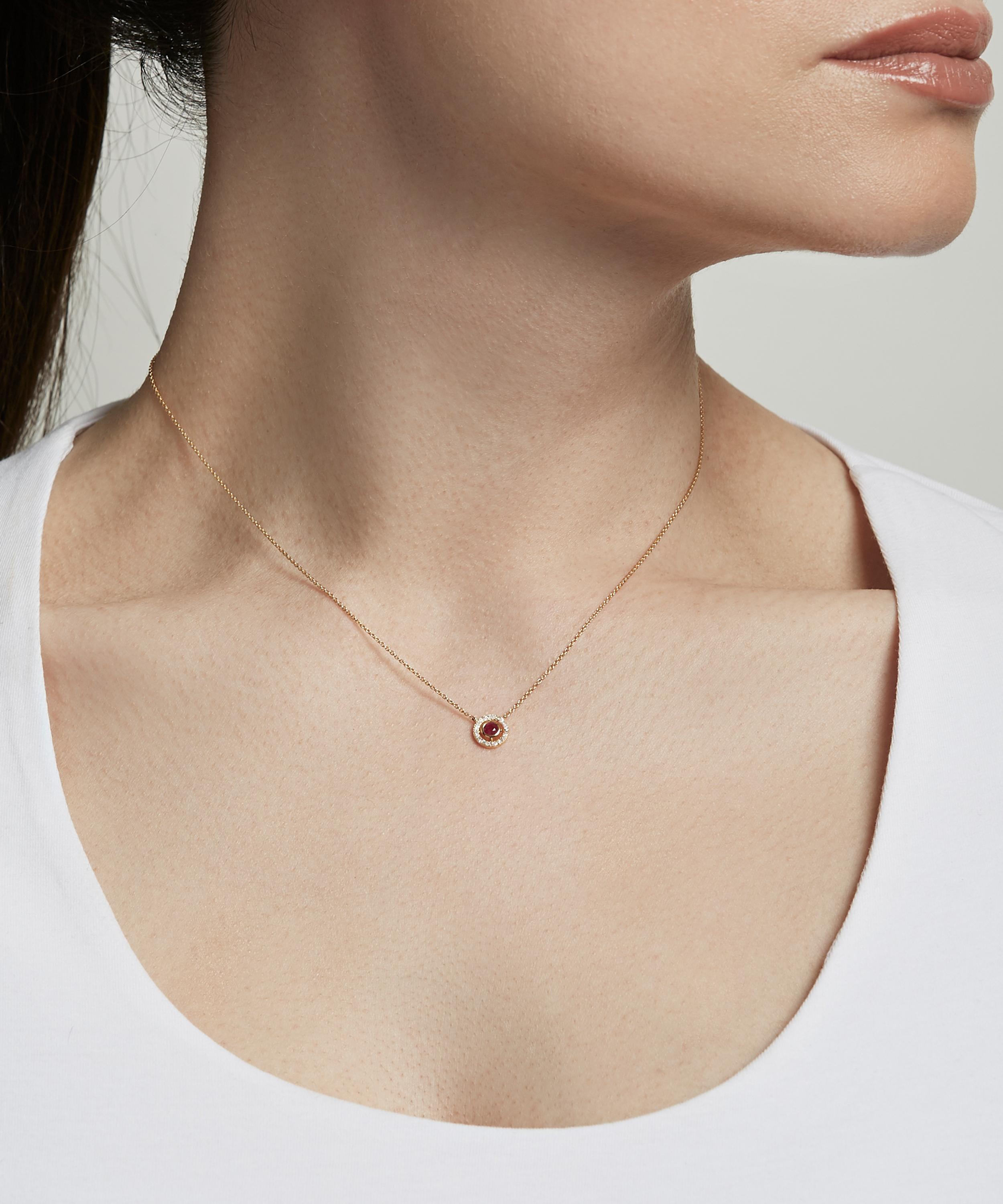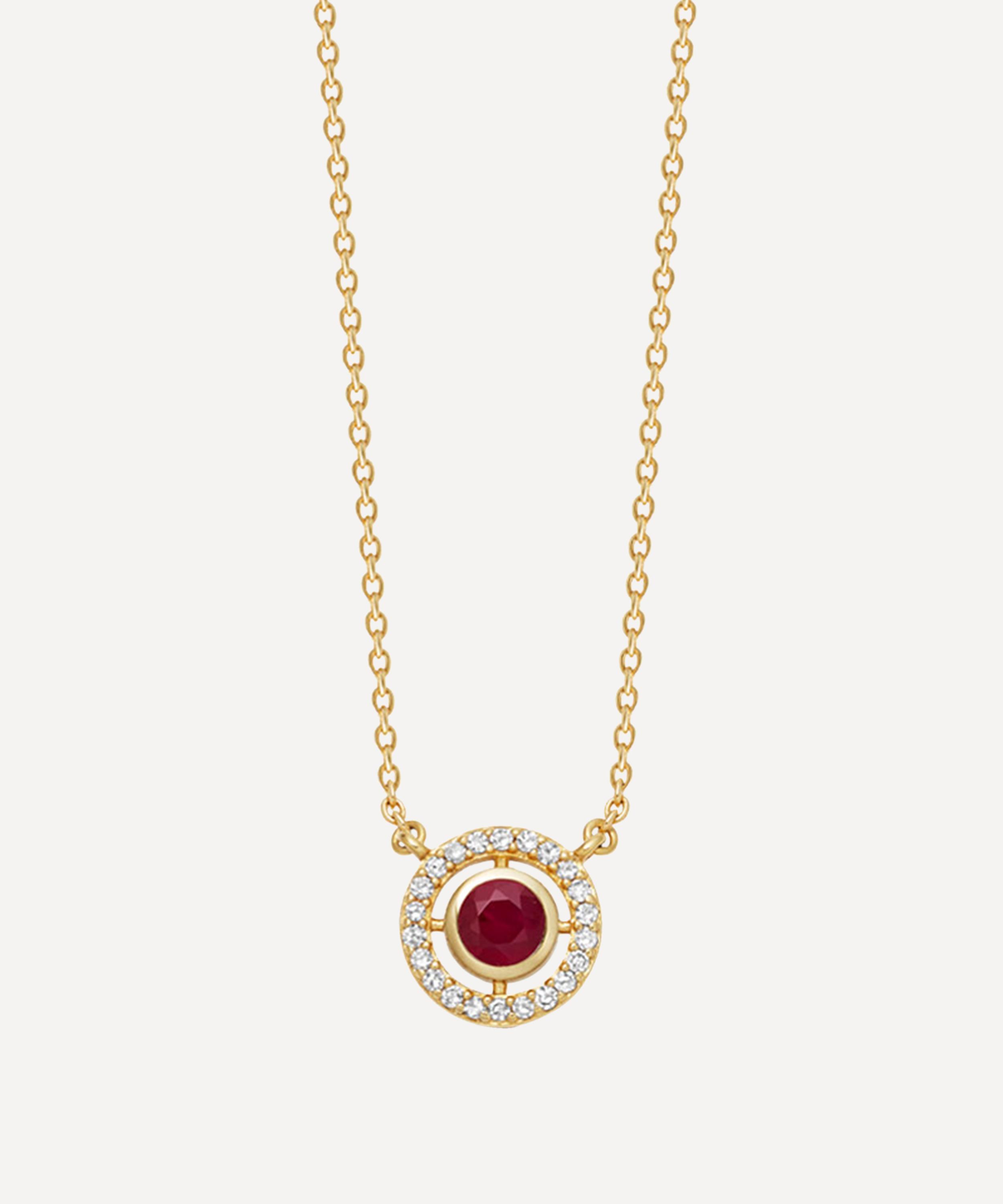 14ct Gold Mini Icon Aura Ruby and Diamond Pendant Necklace