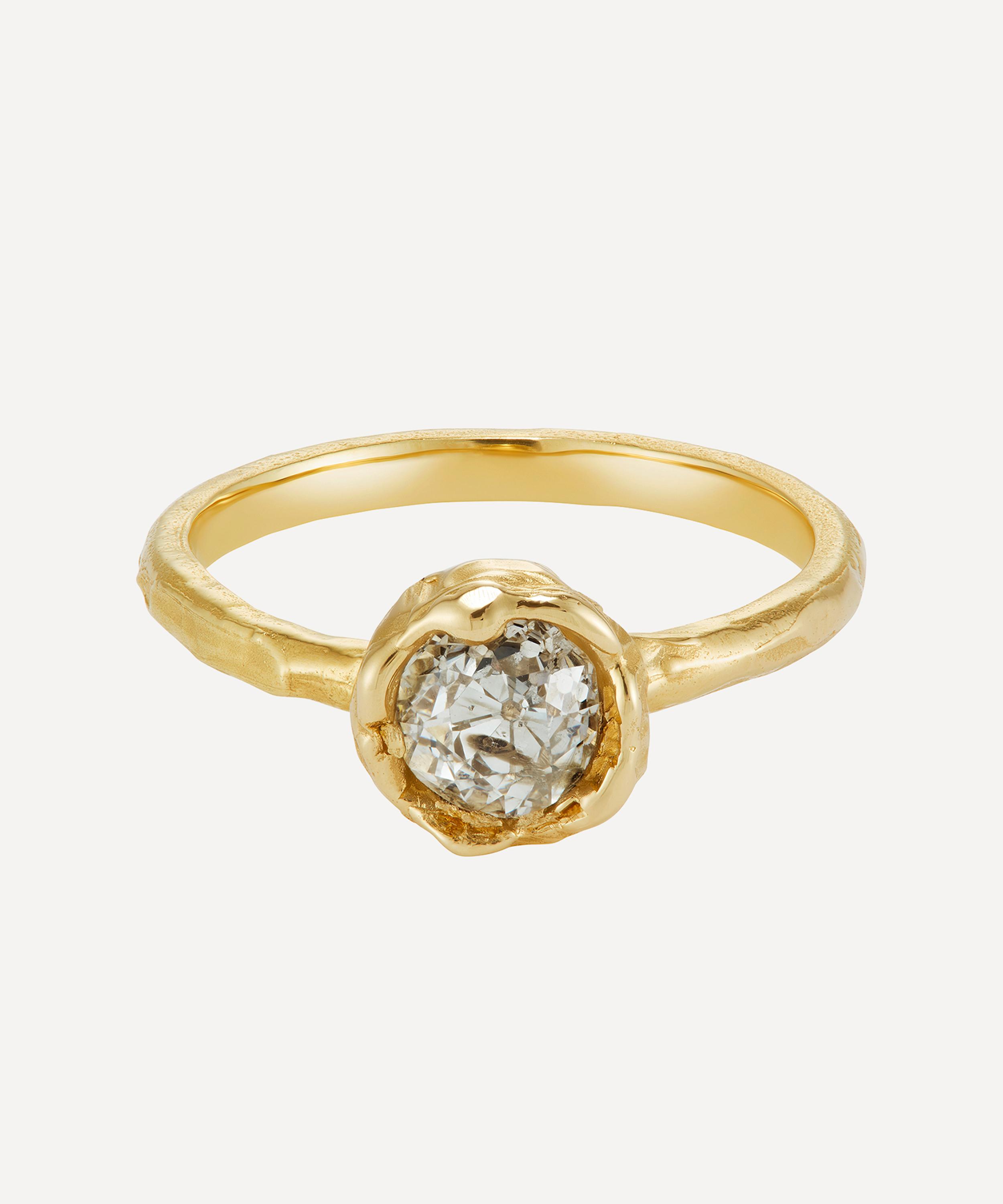 Inspired by medieval jewellery hoards found across Scotland, it features an old cut white diamond cluster set into a softly distressed texture, as if it has been uncovered like buried treasure. Ellis Mhairi Cameron pieces are designed to form sculptural stacks – wear alongside other rings, style it solo as a statement or let it become a unique alternative to an engagement ring.