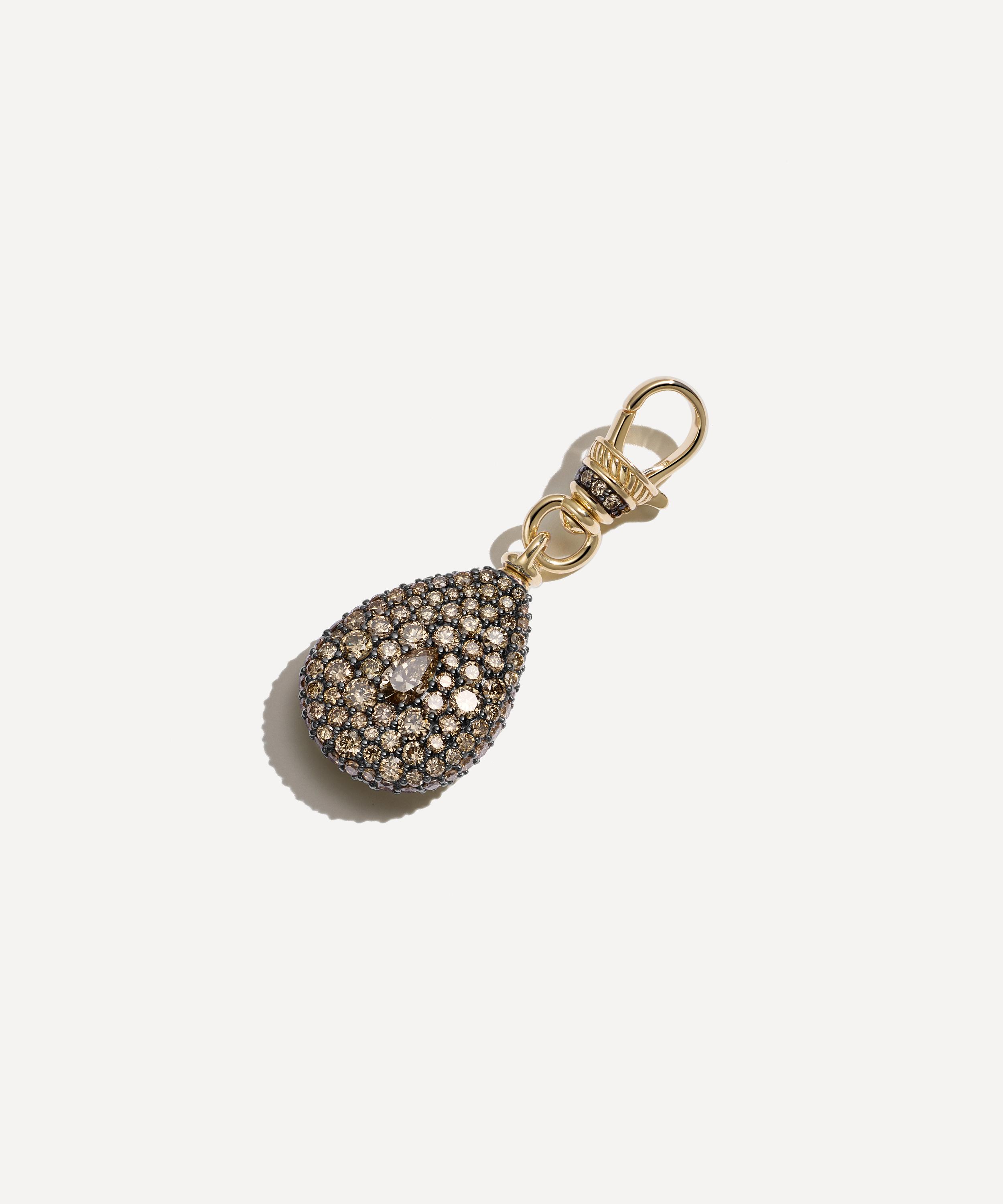 Rendered in 14ct gold, it features a pocket watch-inspired design topped with Victorian-set pavé cognac diamonds atop black rhodium. Complete with a satin finish on the reverse, suitable for engraving, it references a vintage silhouette with a modern sentiment, making it a versatile addition to any jewellery collection. Wear it with one of the brand’s chains and instantly draw attention to both casual and formal looks with its subtle allure.