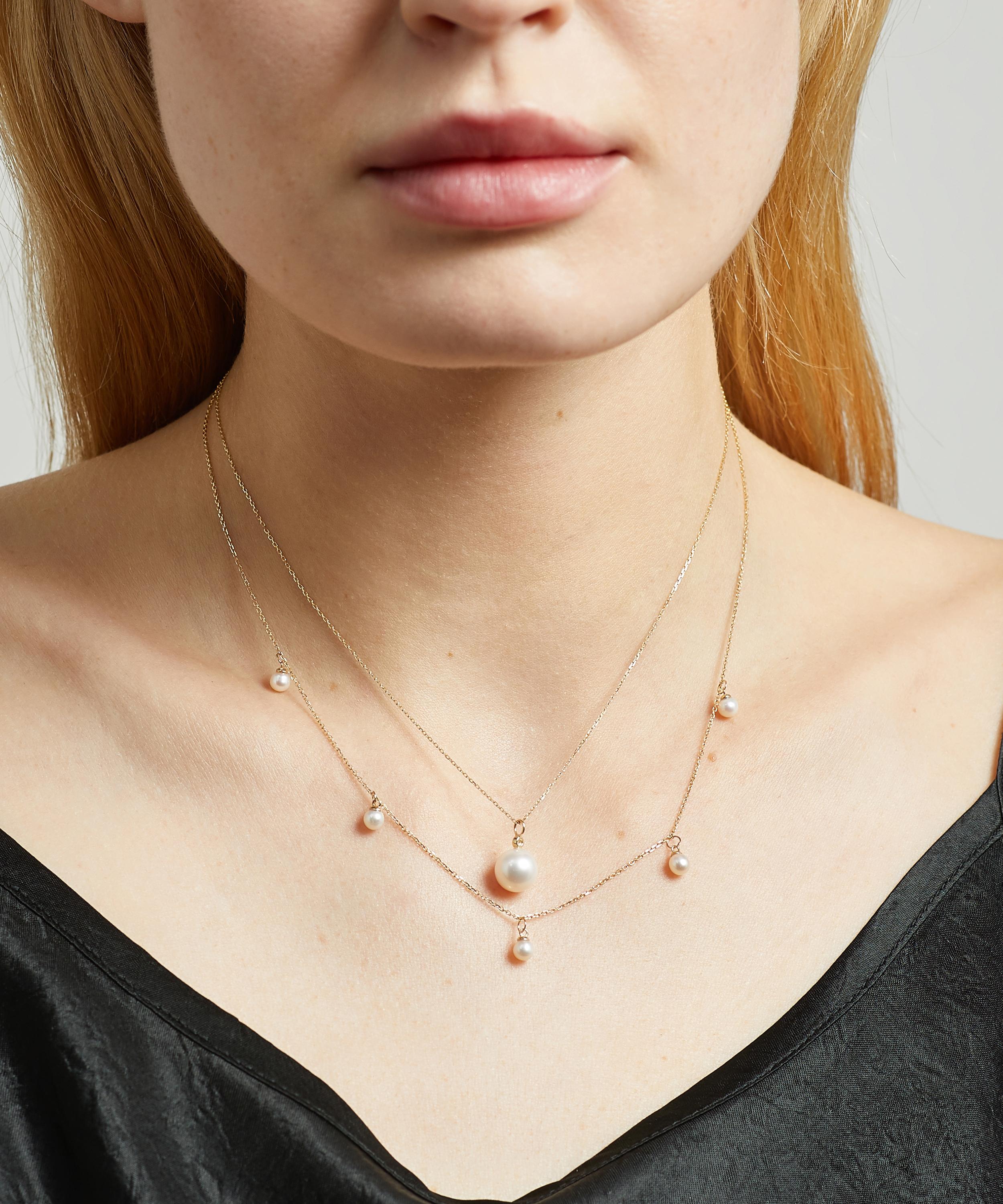 14ct Gold Pearl and Diamond Dot Pendant Necklace