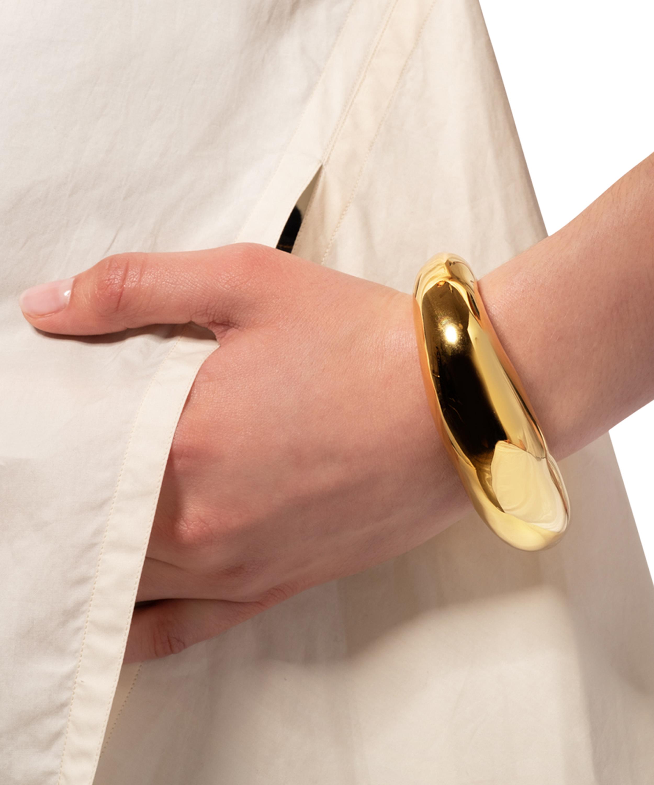 A reimagined take on one of the brand’s signature designs, Alexis Bittar presents this cuff bracelet. Crafted from 14ct gold-plated brass, this bracelet features a large, molten cuff silhouette in a high-polished finish. Pull it over your wrist and embellish your regular wrist stack with a statement piece.