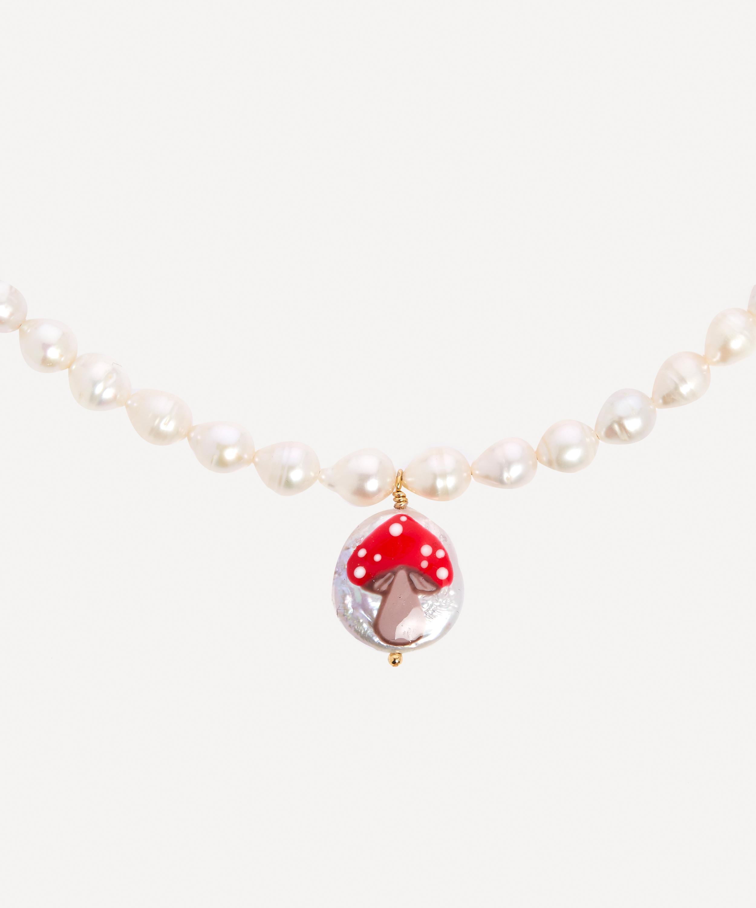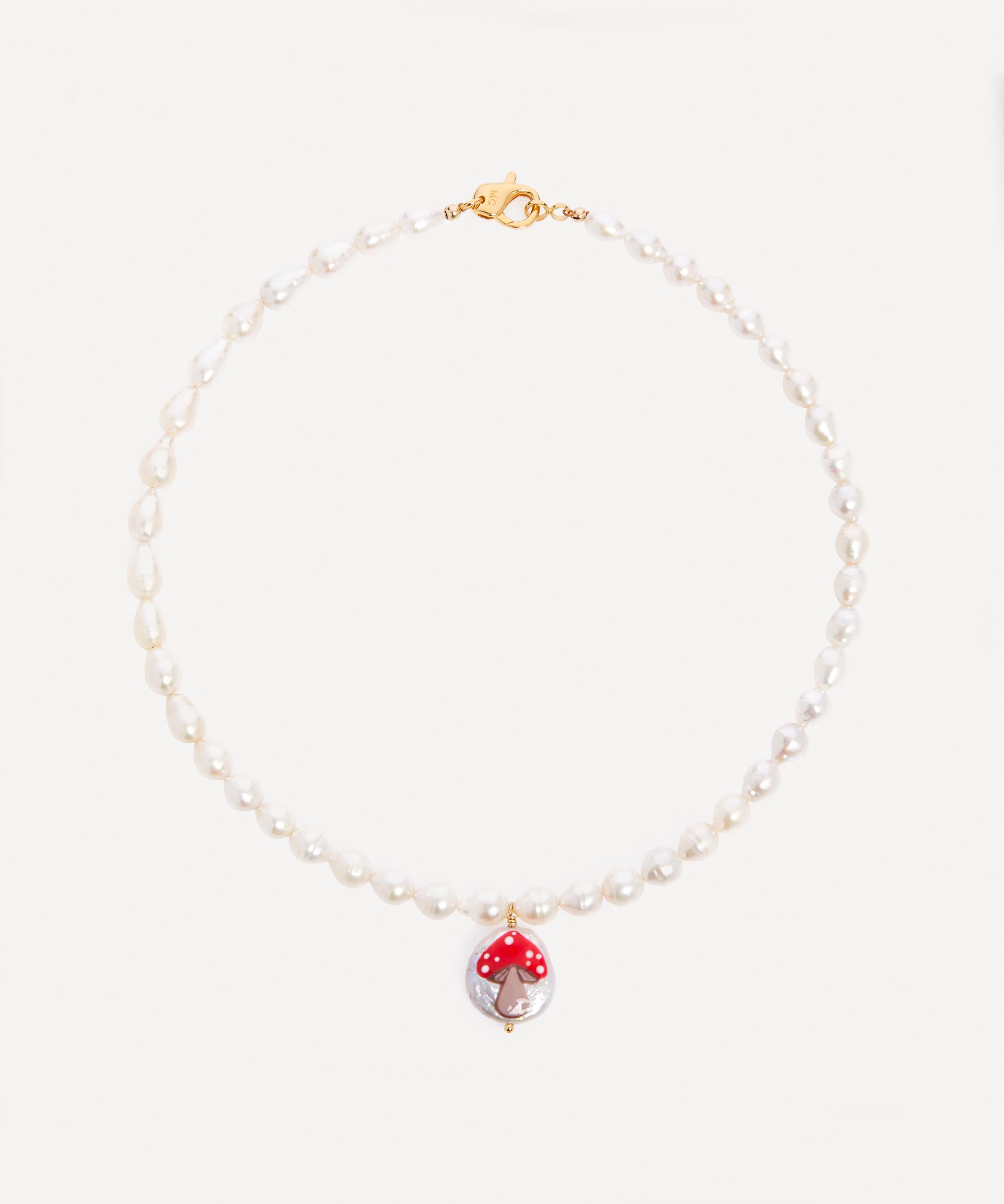 Exclusive to Liberty, the Make Your Magic pearl necklace lends a whimsical take on traditional pearl jewellery from Miami-based brand Martha Calvo. Handcrafted from 14ct gold-plated brass, this necklace features a single string of mismatch freshwater pearls with a large barque pearl at the centre, adorned with a hand painted mushroom motif – try layering it with one of the designer’s chunky chain necklaces for a trend-led take.
