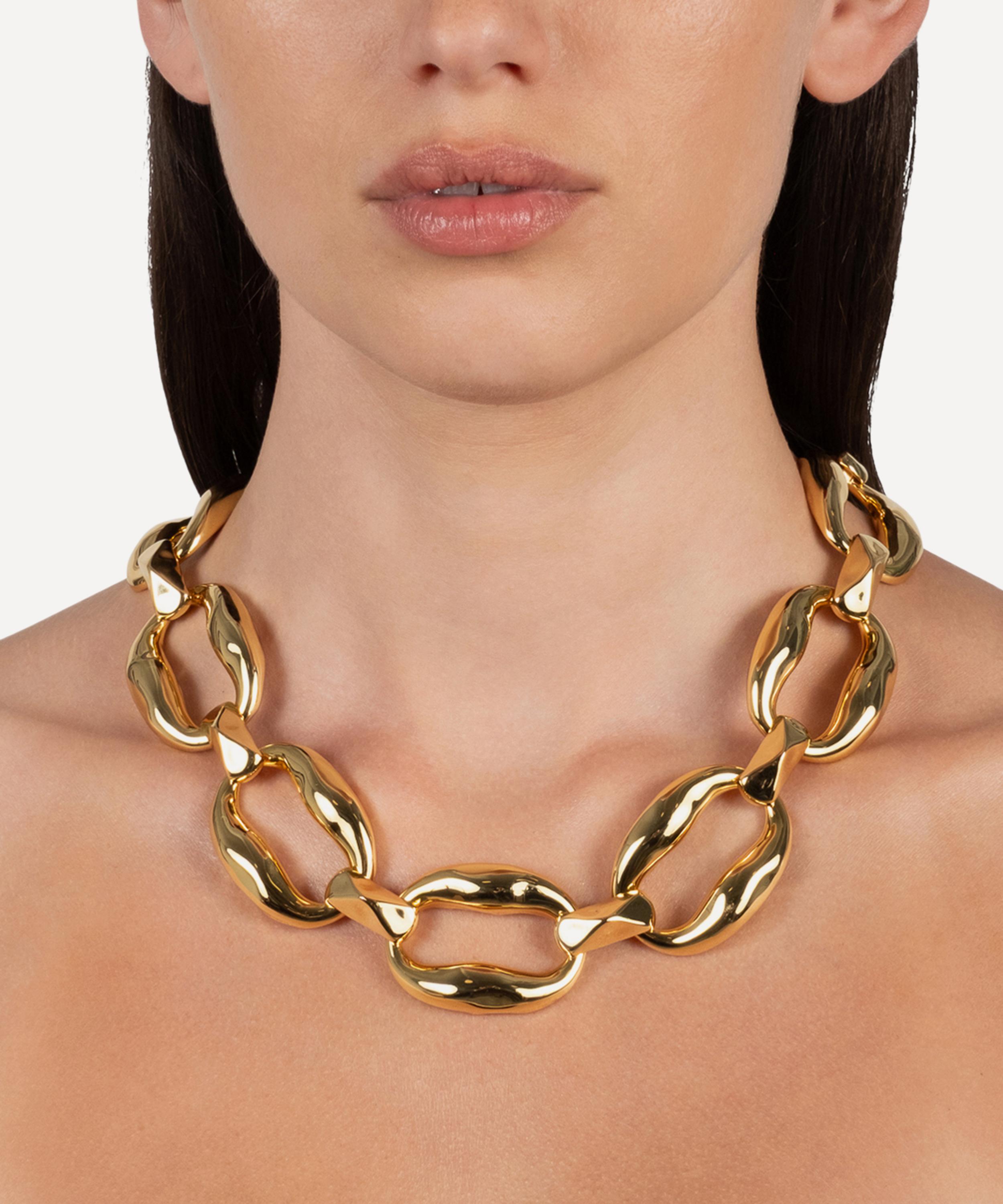 Turn heads with this statement-making chain necklace from acclaimed jewellery designer Alexis Bittar. Crafted from 14ct gold-plated brass, it features a sculptural design with oversized links in a molten finish.
