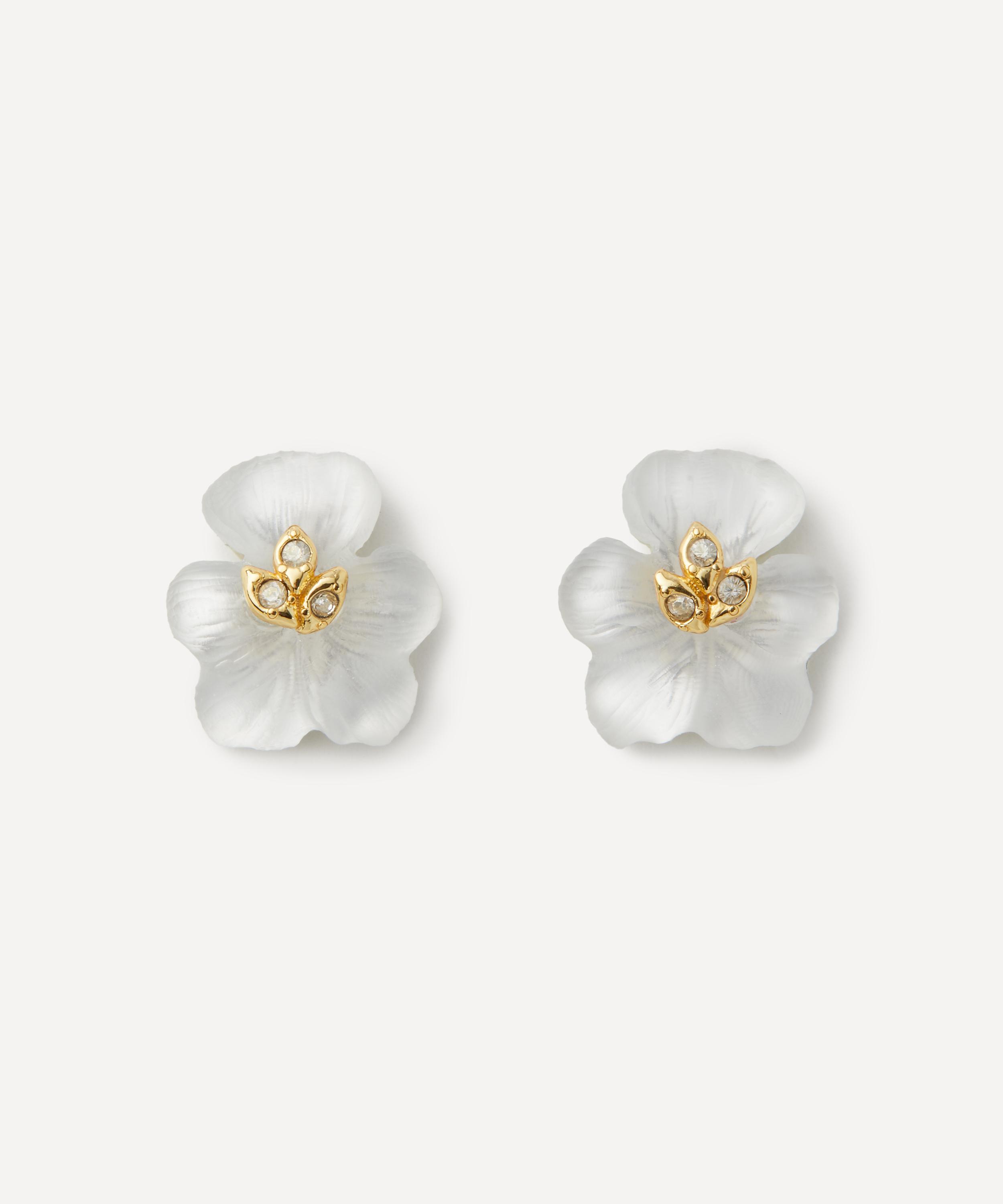 Give your line-up a statement look with these stand-out stud earrings from Alexis Bittar. Crafted from 14ct gold-plated brass, each earring features a hand-sculpted pansy flower, hand-painted in a lustrous white hue and elevated by a crystal centre. Team with the matching Pansy Lucite Petite Pendant Necklace.
