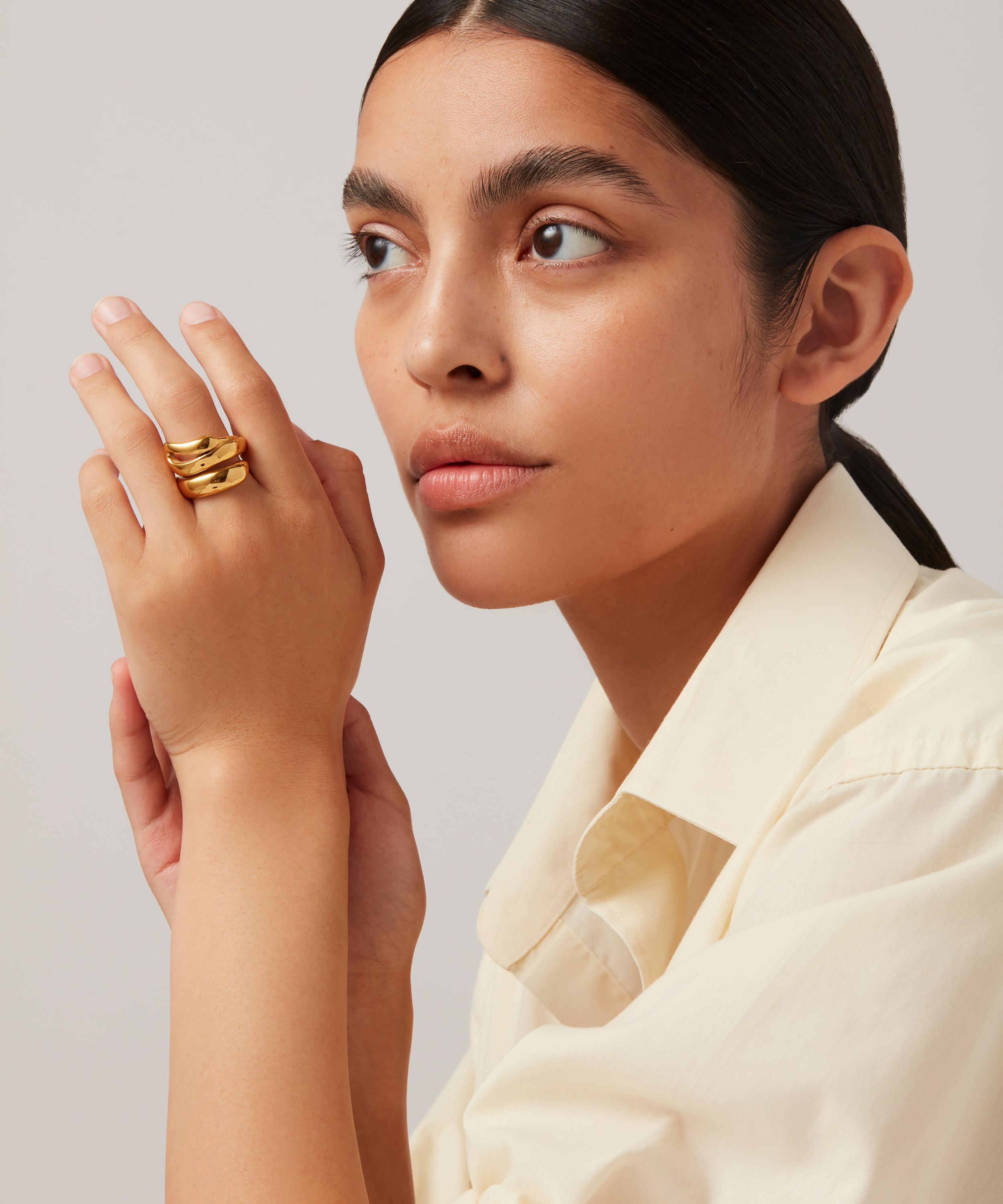 Celebrate the power of good style and the art of getting dressed with the Sées ring from JENNY BIRD. Fashioned from 14ct gold-plated steel into an elongated profile, inspired by the egret bird, it nestles into a chunky, bold shape that wraps around your finger. Fashionable and ultra-versatile, it can be worn solo or layered with other rings to create a trend-led stack.