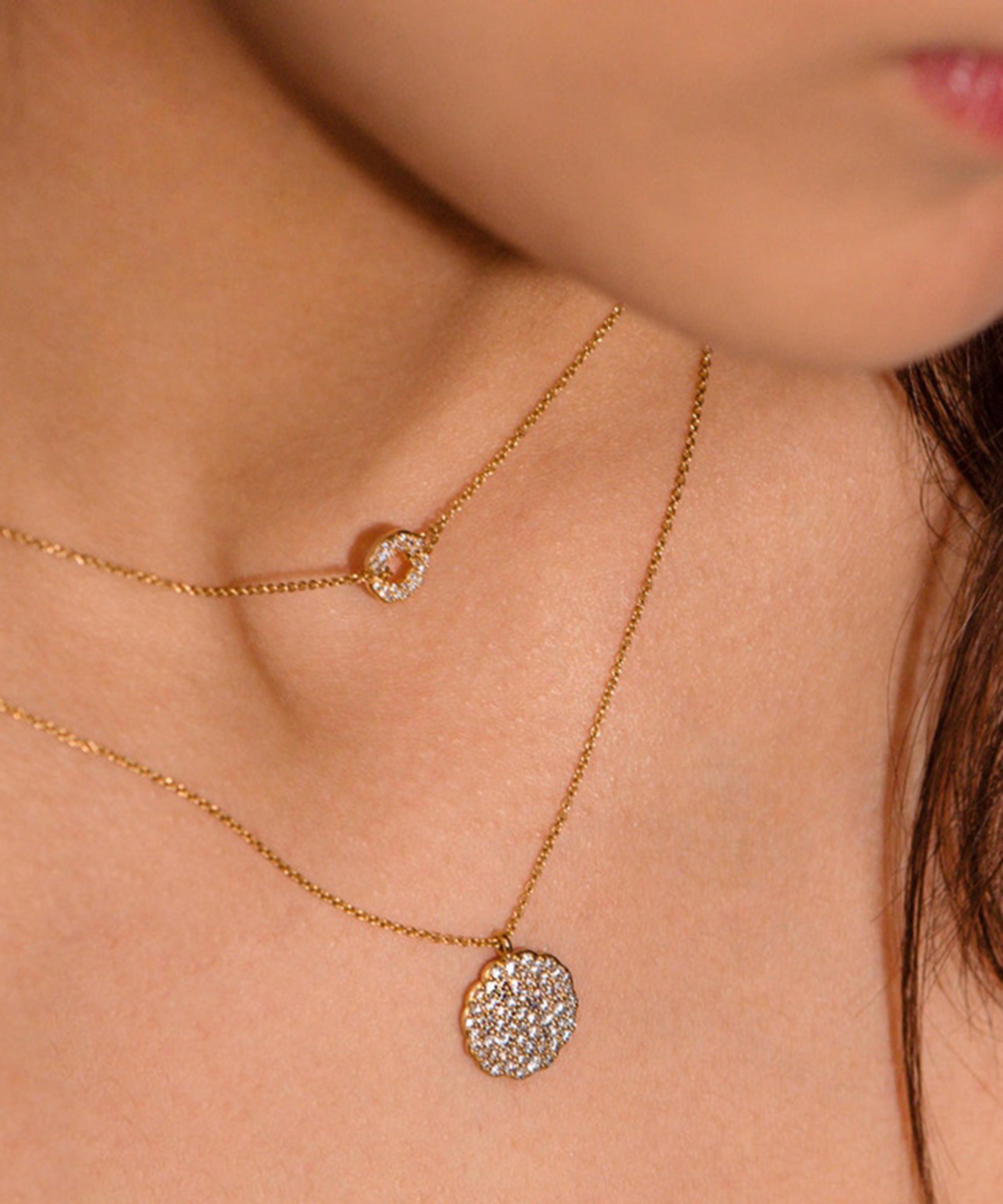 Boasting a captivating, glittering hue, this necklace features a diamond-set pendant – inspired by the beauty of an exploding star. Suspended from a classic trace chain, it’s perfect for layering, try styling it with other diamond-set chains from the brand for a sparkling curation.