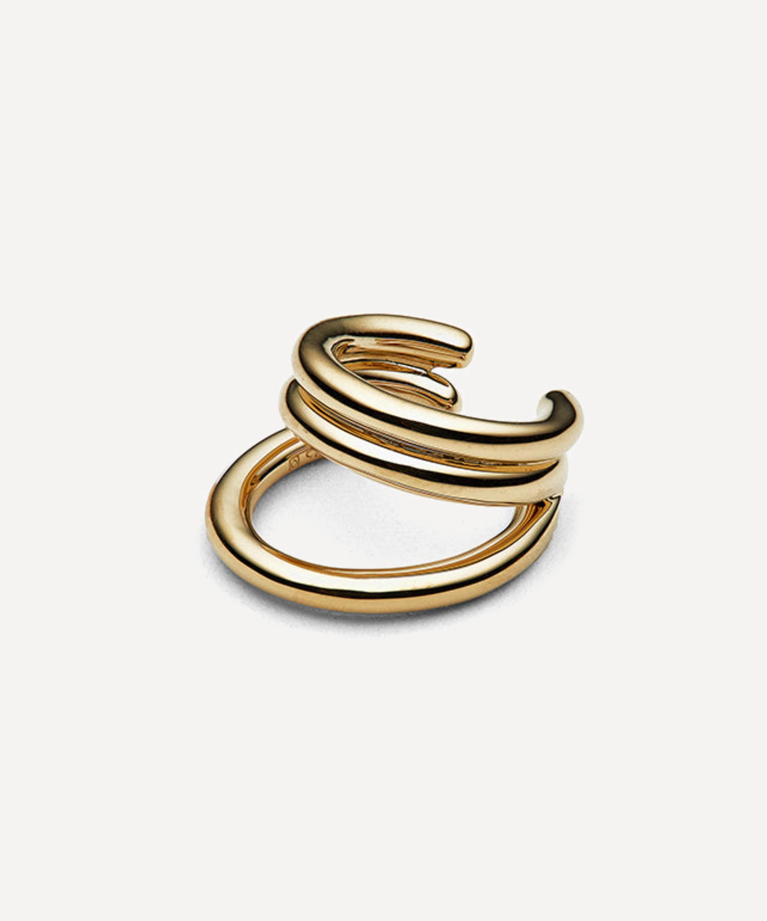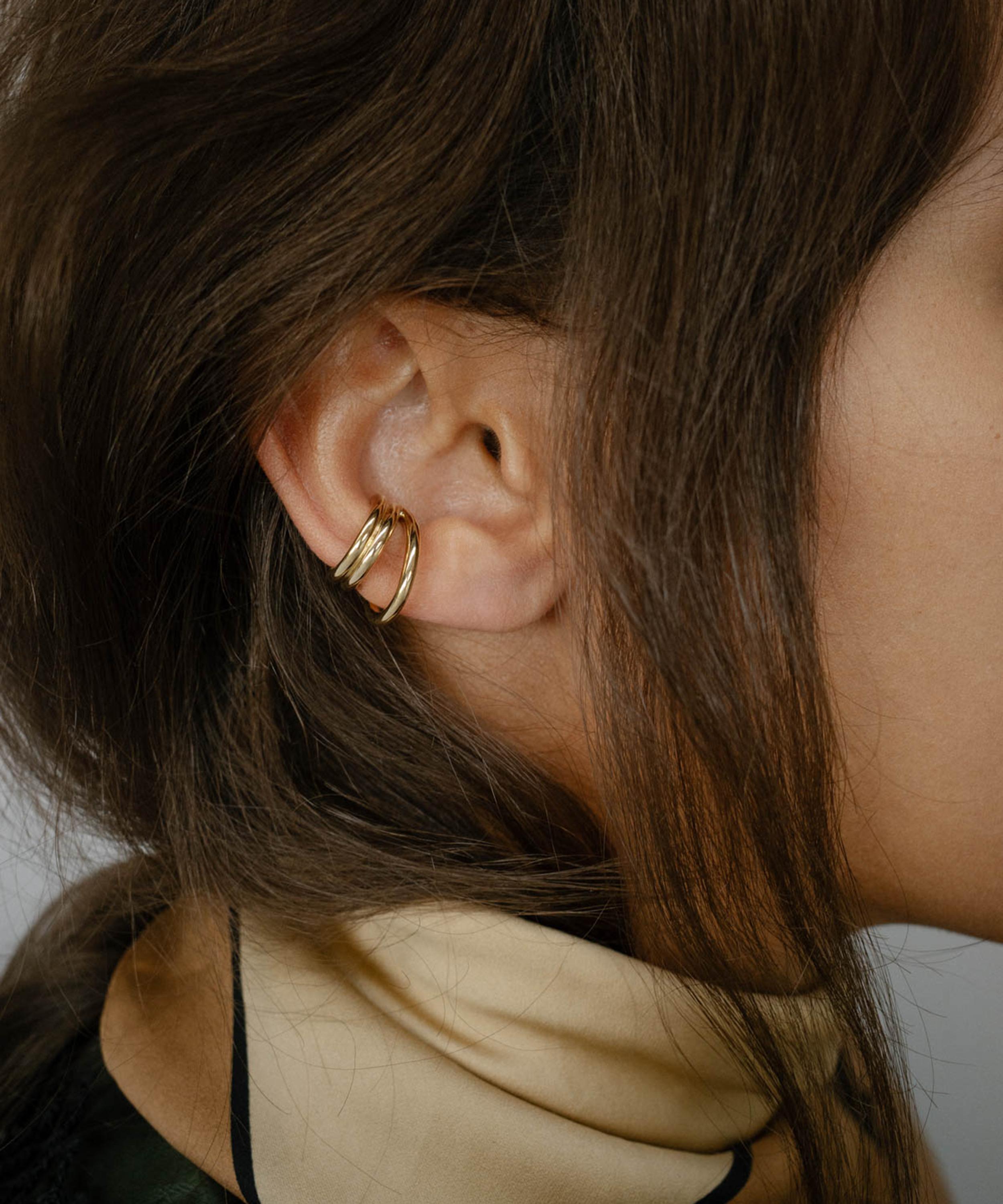 The elegant Concero ear cuff from Otiumberg is a sleek addition to your daily jewellery edit - style with other hoops and studs from the brand for an on-trend curation. Handmade from silver plated in 14 carat gold vermeil, this single cuff features an irregular three loop design and is complete with a high-polished finish to accentuate its fluid lines.