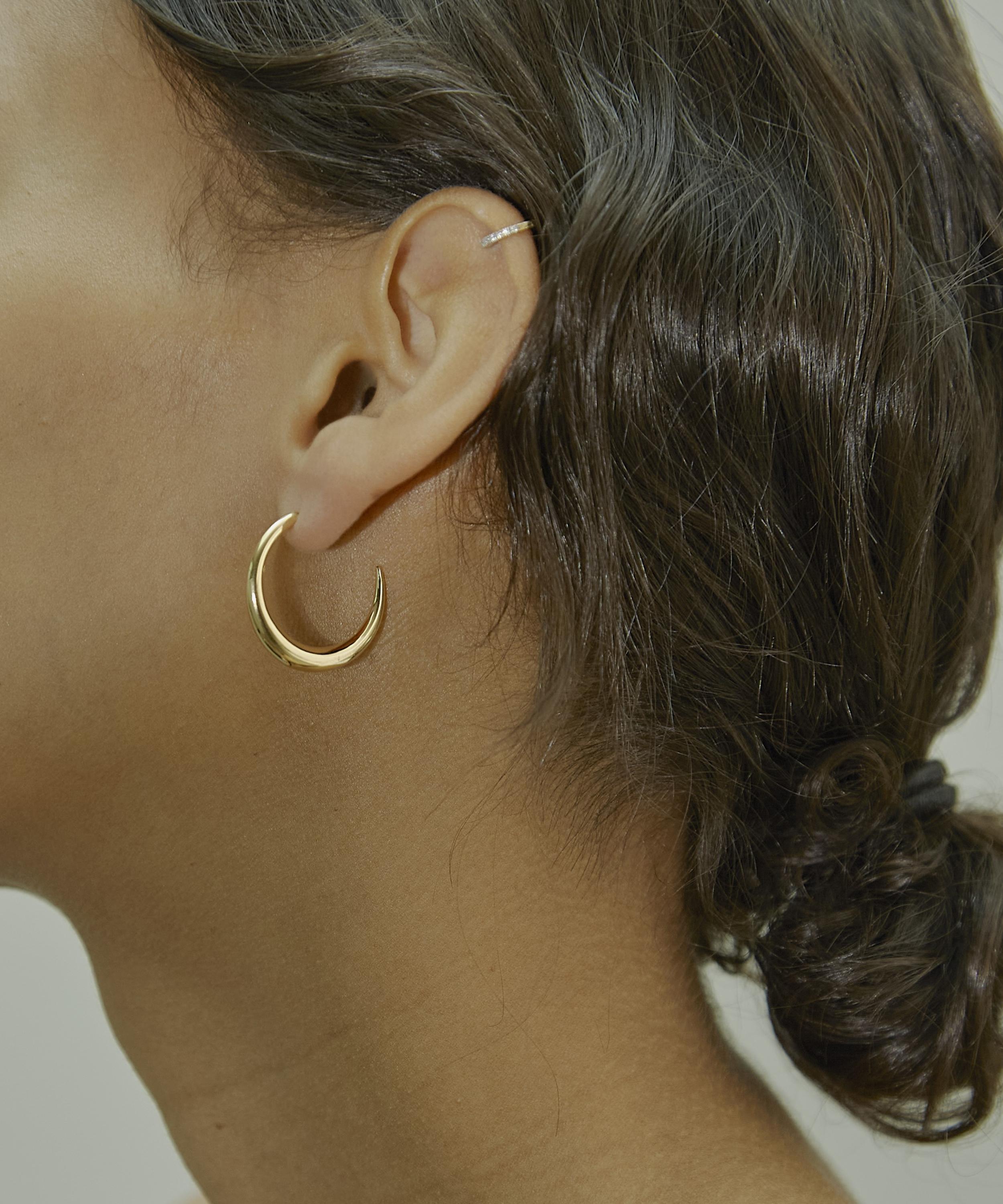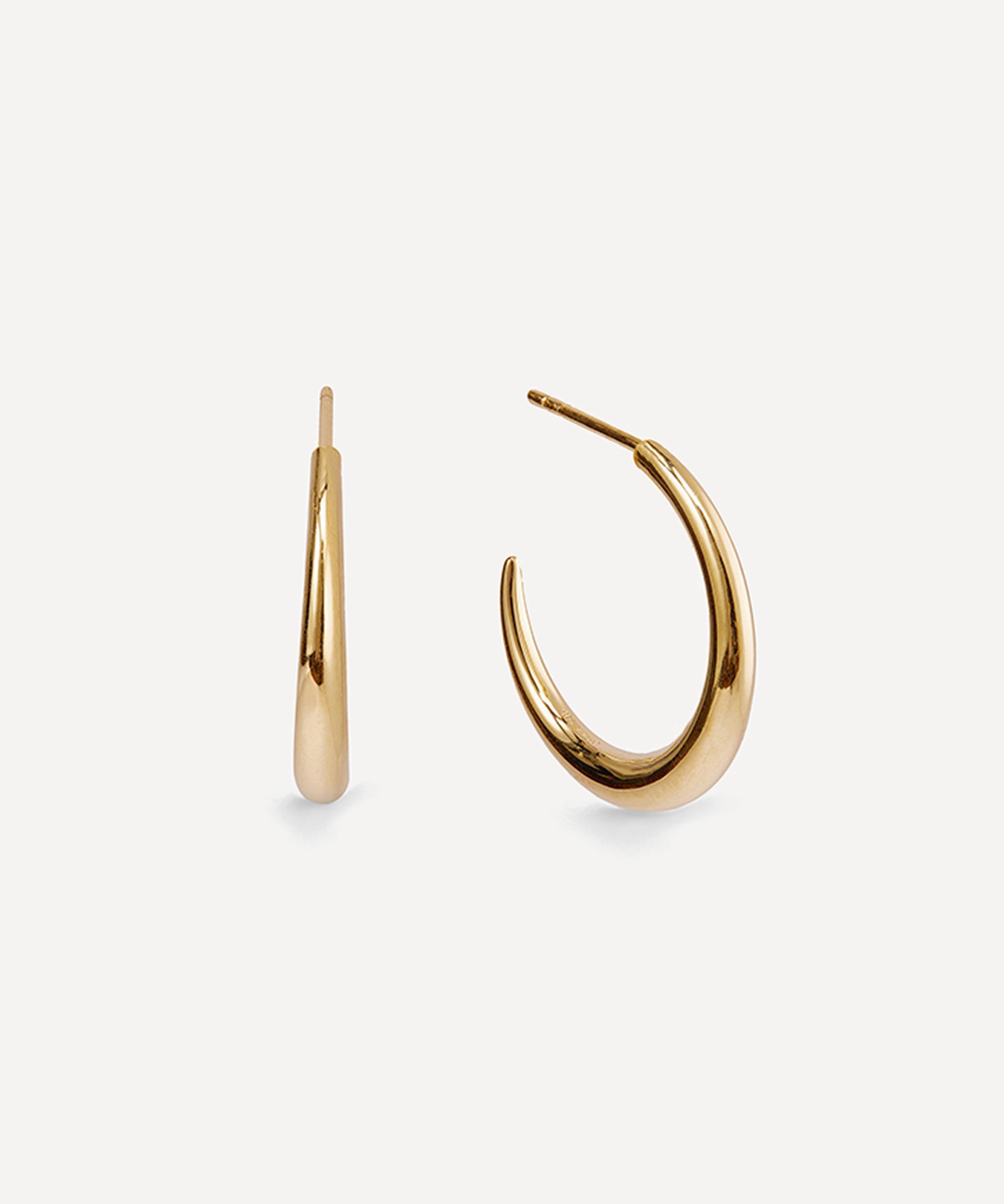 Every piece of Otiumberg jewellery is responsibly handcrafted from recycled raw materials as part of the brand's ongoing commitment to sustainable design. Lightweight enough to be worn every day, each of these three-quarter hoop earrings showcases an elegantly tapering silhouette with a high-polished finish and a secure post and butterfly fastening. A versatile addition to any jewellery line-up, mix and match with the brand's other plain gold and gem-encrusted hoops for an elevated take on a classic jewellery box staple.