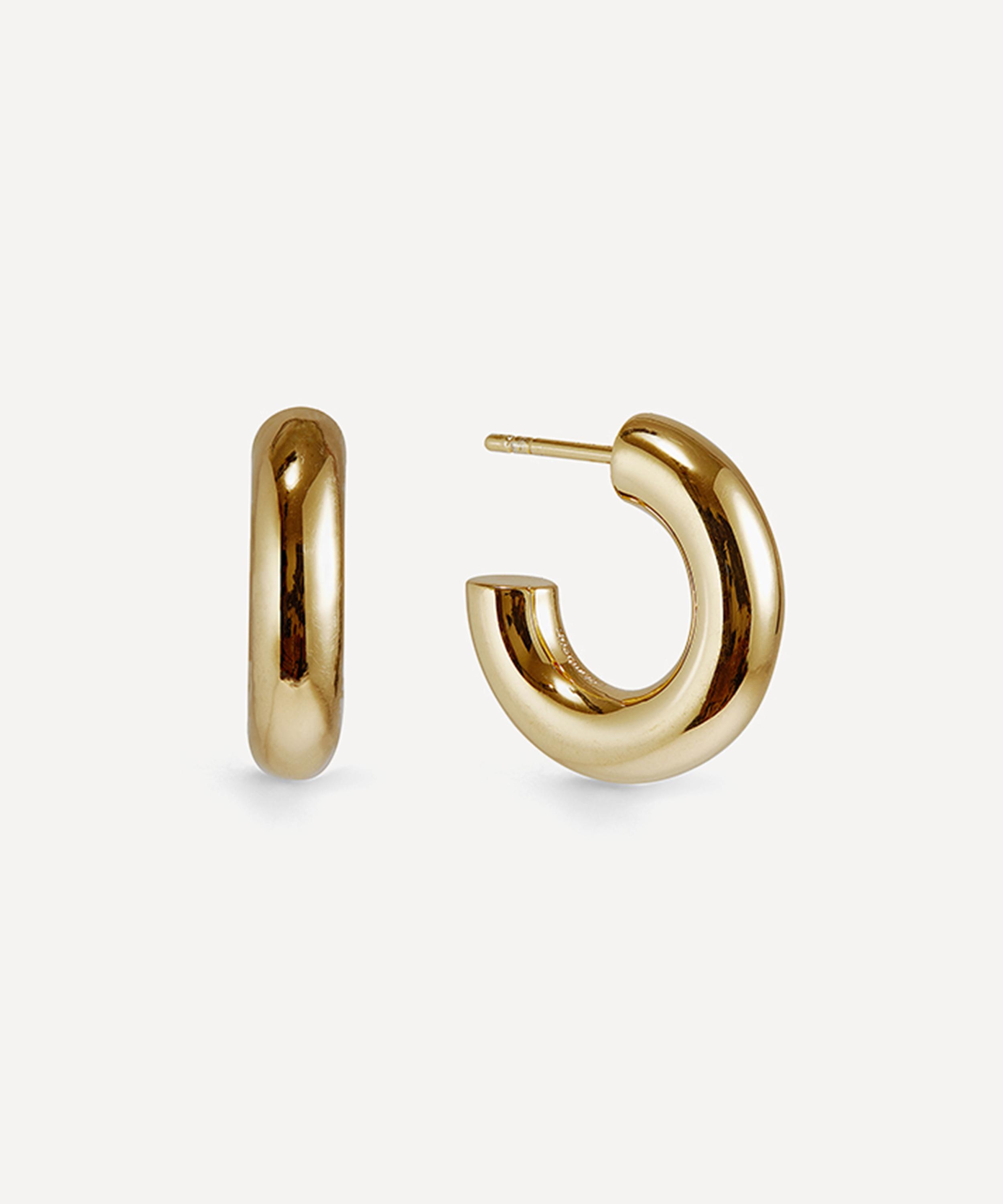 Every piece of Otiumberg jewellery is responsibly handcrafted from recycled raw materials as part of the brand's ongoing commitment to sustainable design. Lightweight enough to be worn every day, each of these mini three-quarter hoop earrings showcases a chunky, tubular silhouette with a high-polished finish and a secure post and butterfly fastening. A versatile addition to any jewellery line-up, mix and match with the brand's other plain gold and gem-encrusted hoops for an elevated take on a classic jewellery box staple.