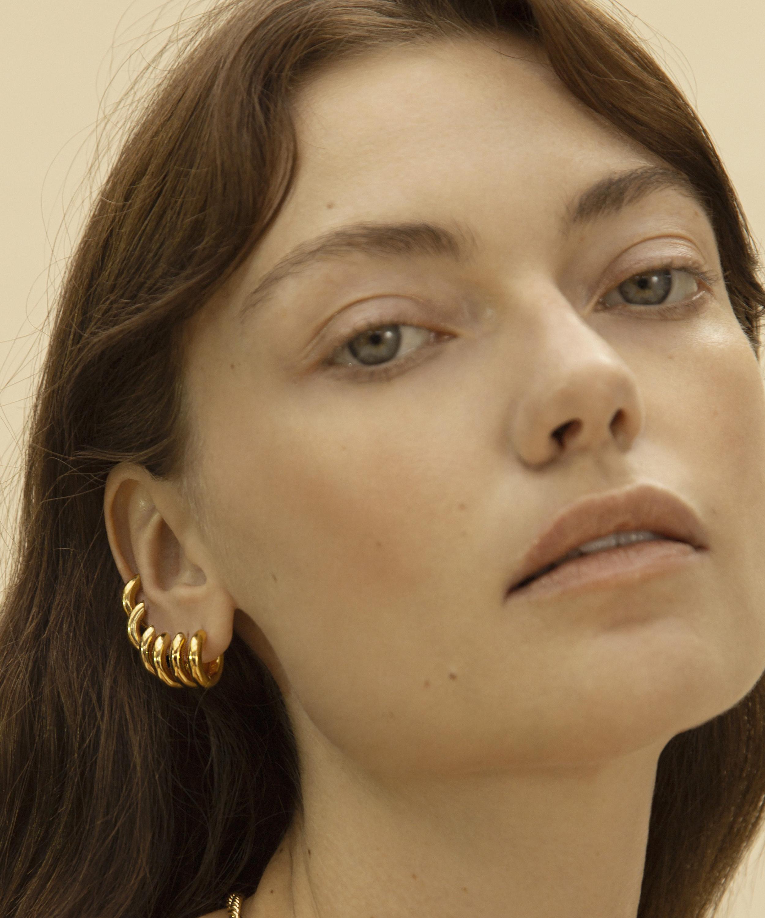 Handcrafted from sterling silver plated in 14 carat gold vermeil, these mini chunky hoop earrings are an everyday staple style from Otiumberg - the London-based jewellery brand driven by longevity and responsibility.