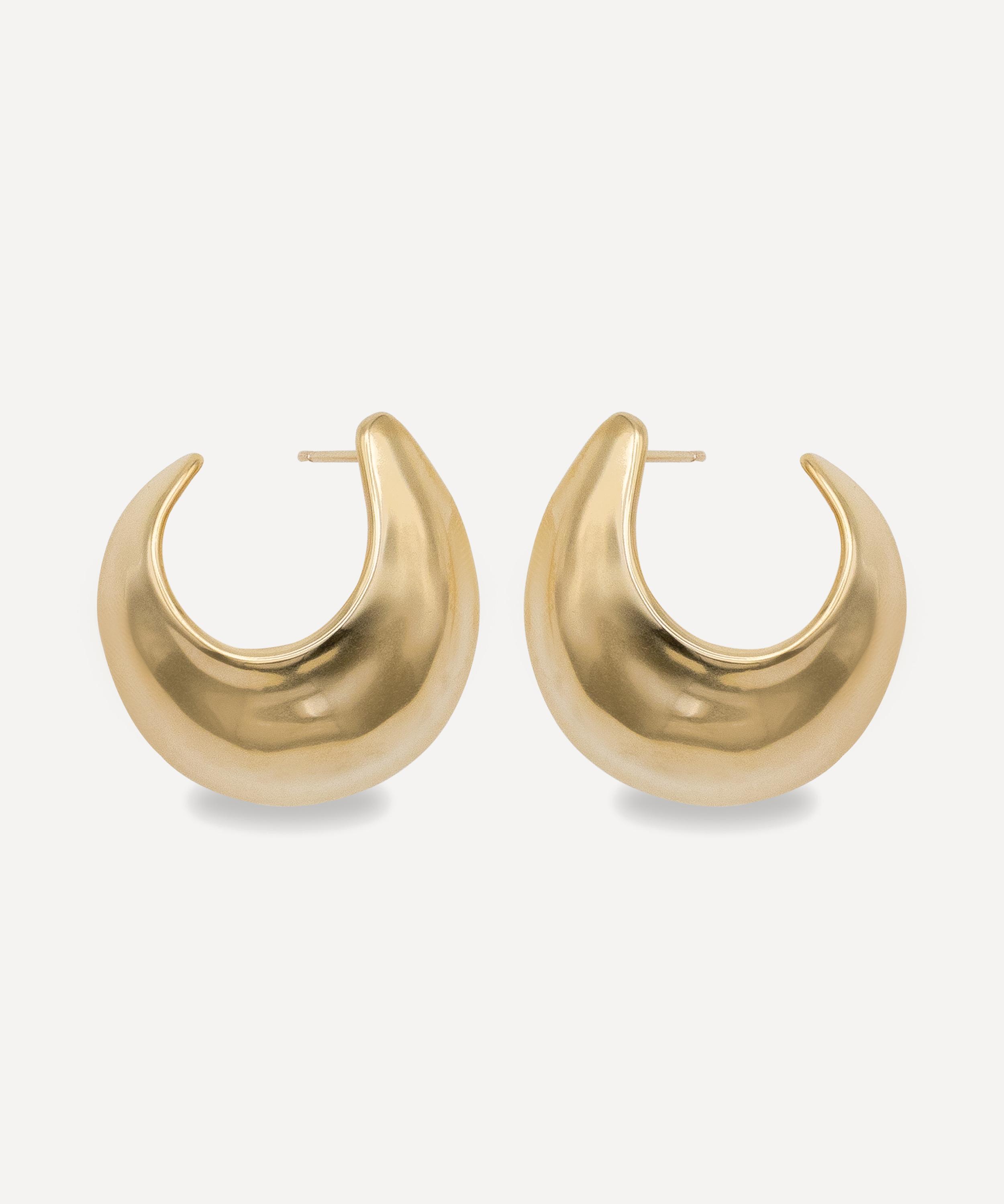 Named after the designer’s mother, the Sabine Classic hoop earrings from By Pariah boast a sculptural interpretation of natural forms. Crafted from sterling silver plated in 14ct gold vermeil, each earring features a curved, half-moon silhouette in a polished finish. These bold and tactile pair can be worn on their own or paired with other piercings – try diamond studs and a silver cuff.