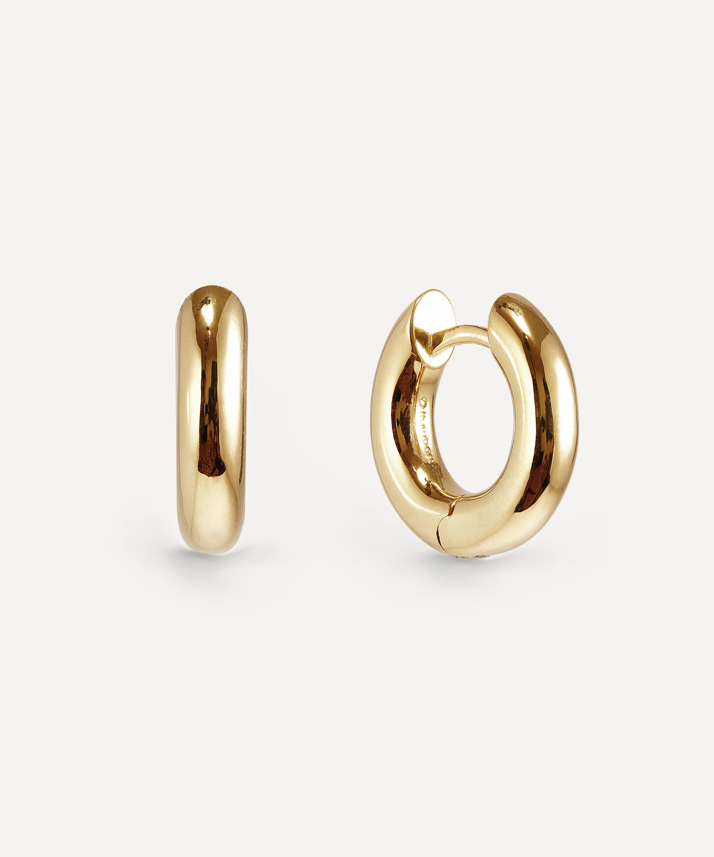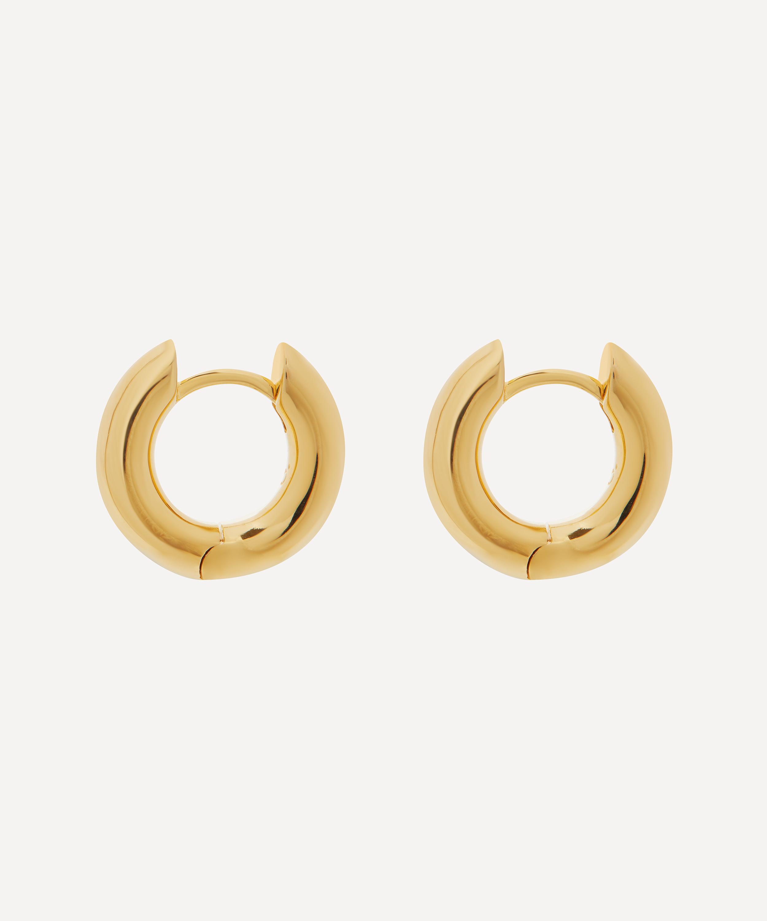 Every piece of Otiumberg jewellery is responsibly handcrafted from recycled raw materials as part of the brand's ongoing commitment to sustainable design. Lightweight enough to be worn every day, each of these small hoop earrings showcases a chunky, tubular silhouette with a high-polished finish and a secure hinge and post fastening. A versatile addition to any jewellery line-up, mix and match with the brand's other plain gold and gem-encrusted hoops for an elevated take on a classic jewellery box staple.