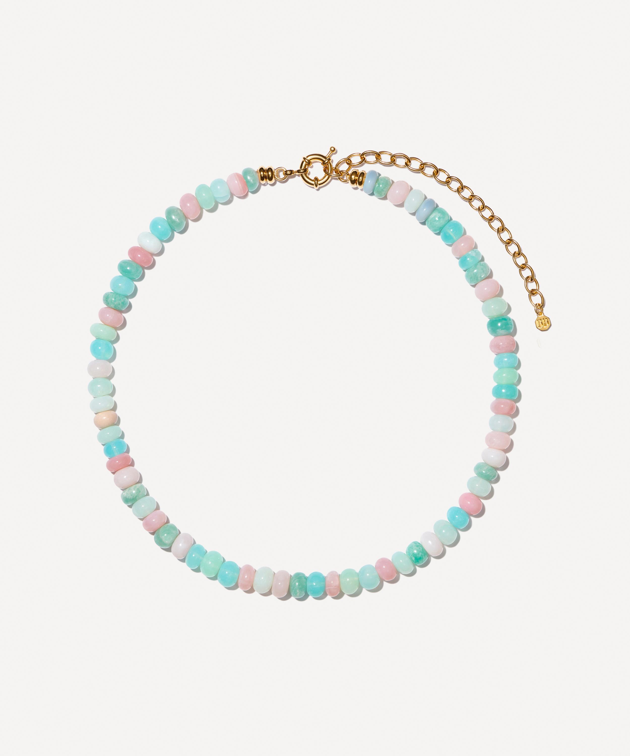 Add a playful pop of colour to your outfit and draw all eyes on you with this mood-boosting bead necklace from Bon Bon Jewellery Club. Handcrafted from sterling silver plated in 14ct gold vermeil, it features a single thread knotted with delectable candy pastel opal beads – a gemstone known to amplify vibrational energy and inspire hope, optimism and positivity. Style it as a solo piece, stack it with contrasting gold chains and pendant necklaces or layer it with other beaded designs from the brand for a unique take on dopamine dressing.