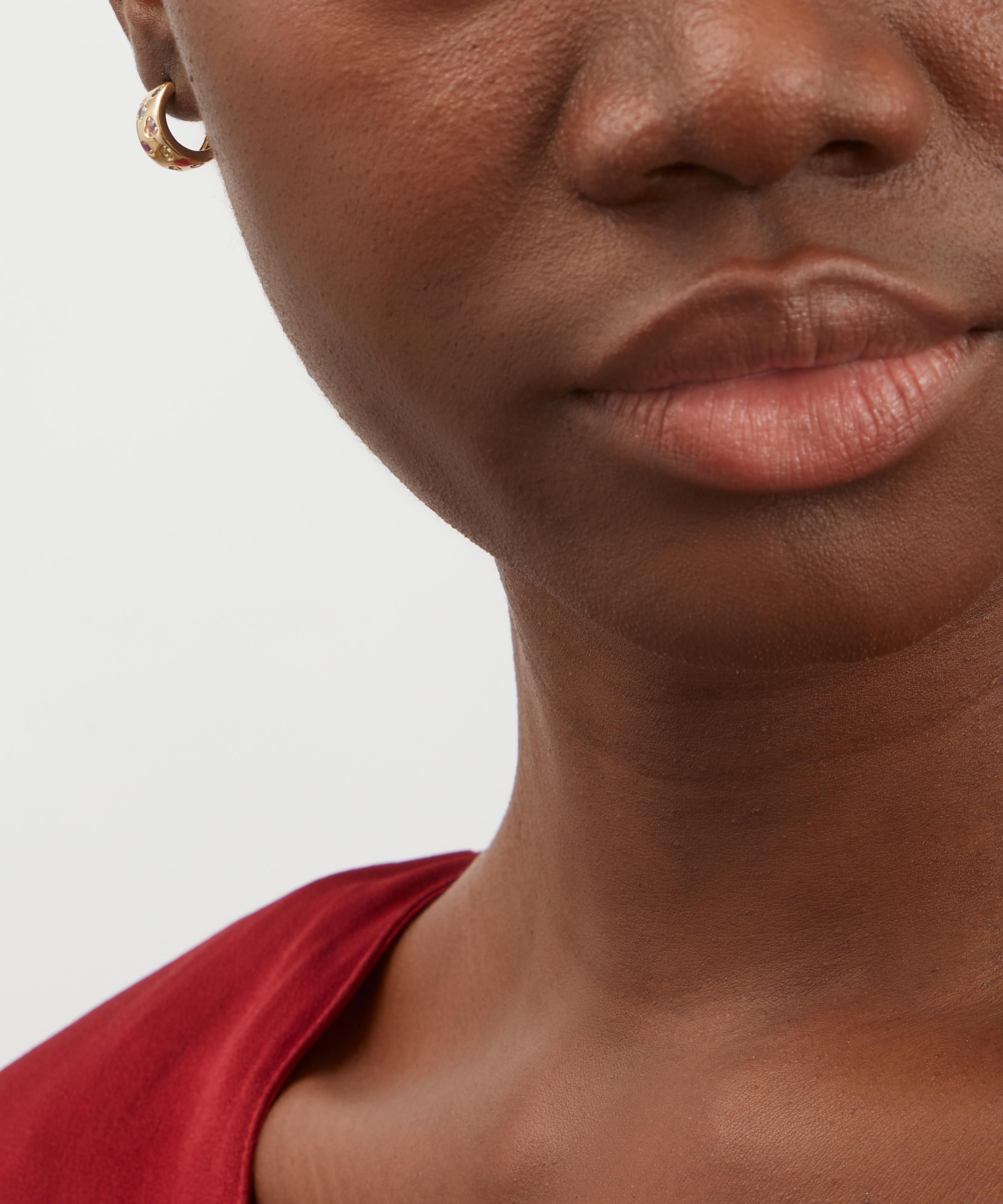 Bring good luck and playfulness to your ear stack with the Rainbow Sapphire Confetti hoop earrings by Roxanne First. Crafted from 14ct gold, each earring features a polished half hoop embellished with confetti-style rainbow sapphires. Style them on their own, or team with small studs and other gemstone hoops for a layered look.