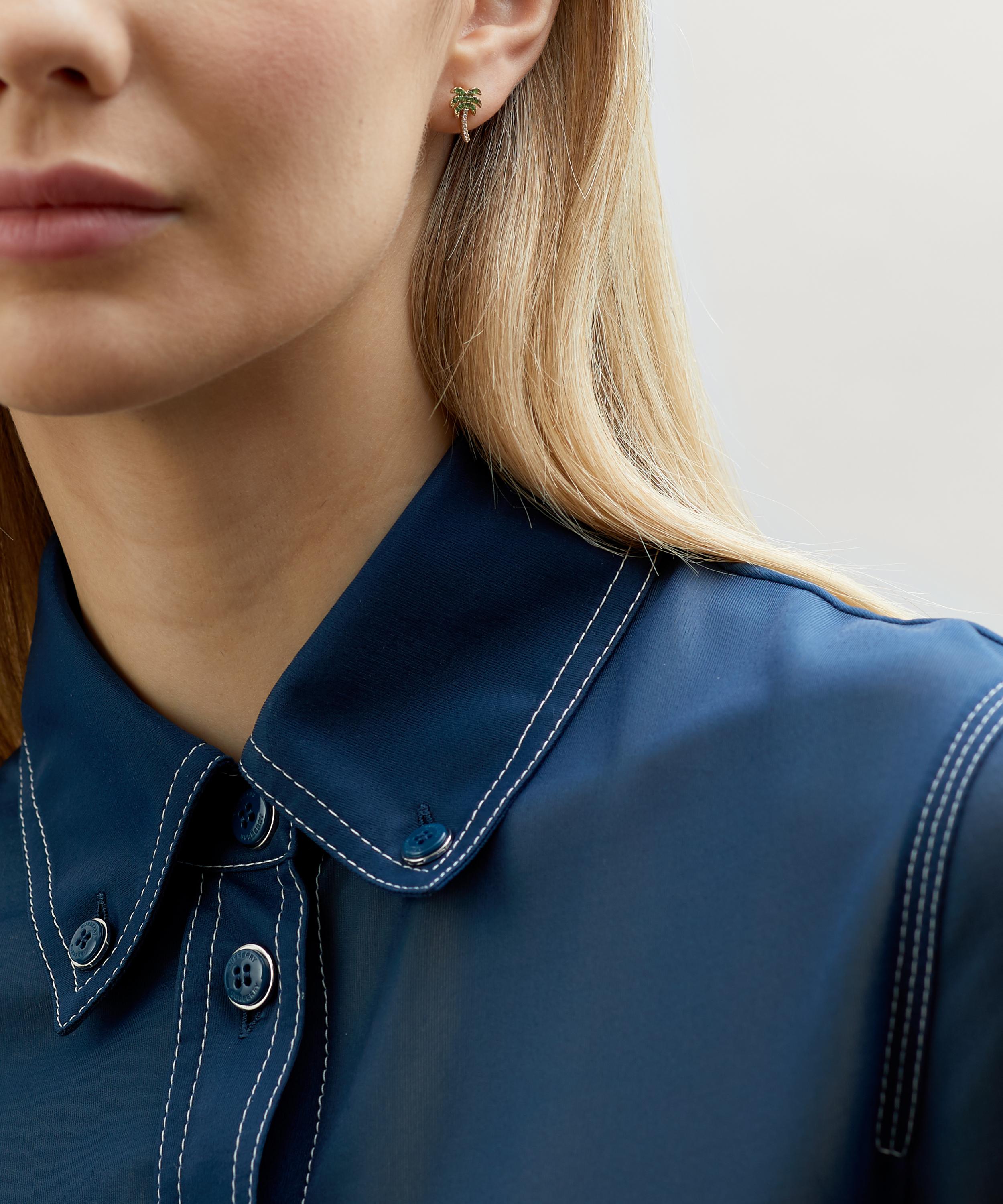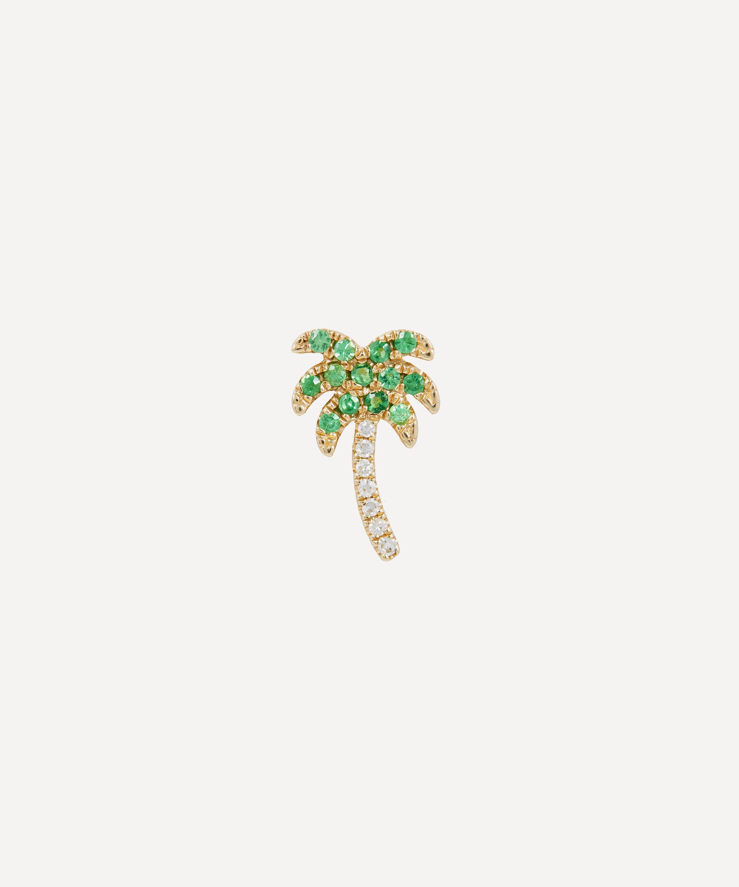 Designed for endless mixing and matching, every Roxanne First design is both timeless and versatile, made from ethically-sourced materials in the brand's London studio. Crafted from solid 14 carat gold, this single stud earring features a petite palm tree with glittering green garnet leaves and a white diamond trunk. Try wearing it with an array of other playfully designed studs for a casual, contemporary approach.