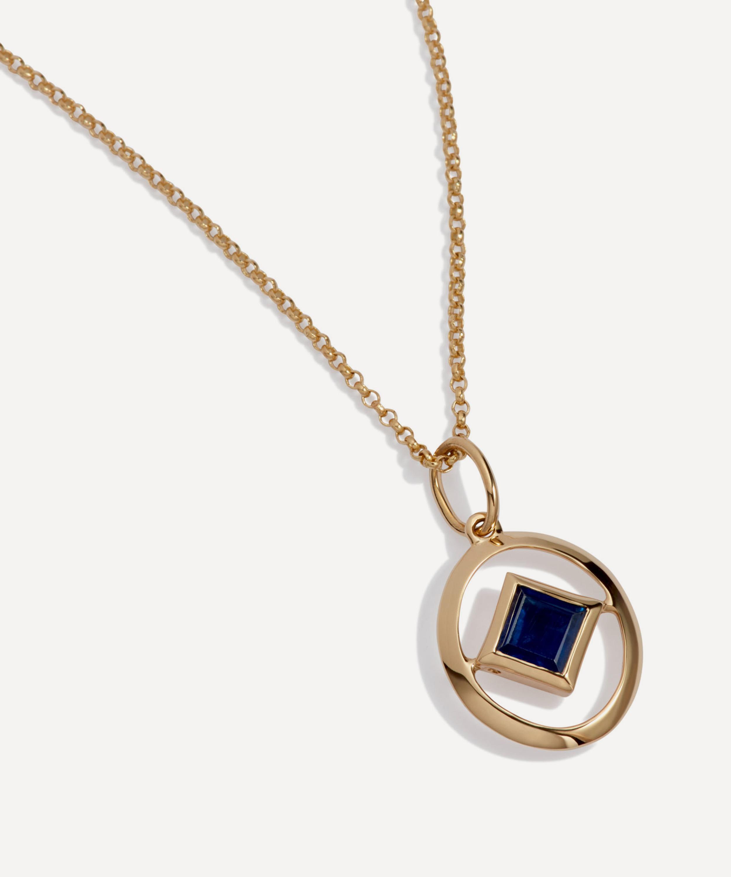 Add a personal touch to your daily jewellery line-up with Annoushka’s birthstone pendant necklace. Crafted from 14ct gold, this pendant features an oval silhouette with open metal work and a diamond-shaped inner adorned with September’s birthstone, the sapphire. Designed to be layered with the brand’s Zodiac and Initial pendants, it offers a sentimental token to treasure forever.