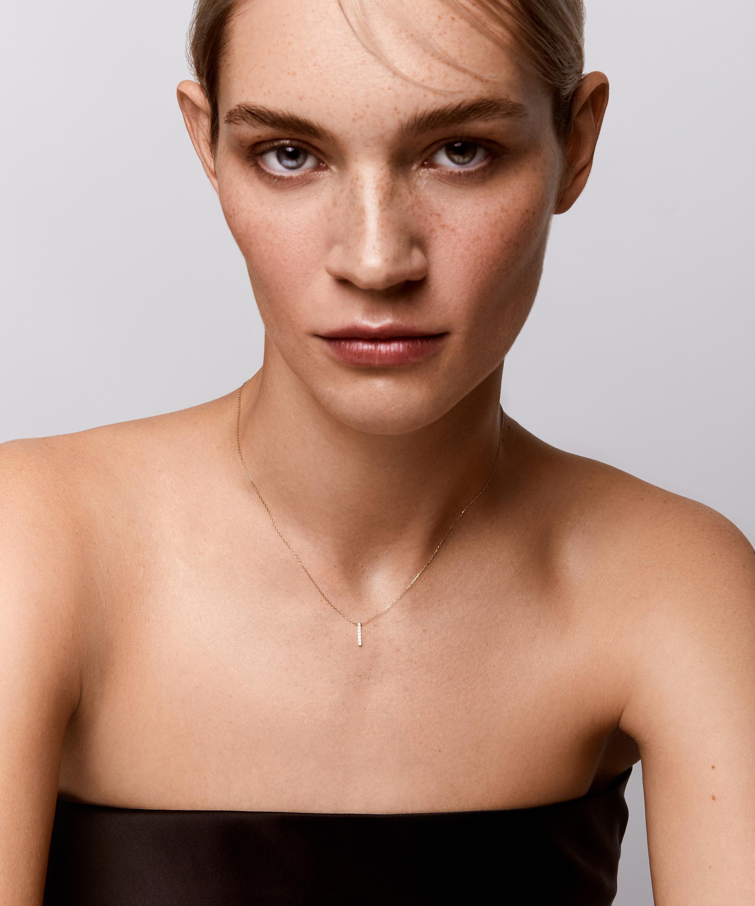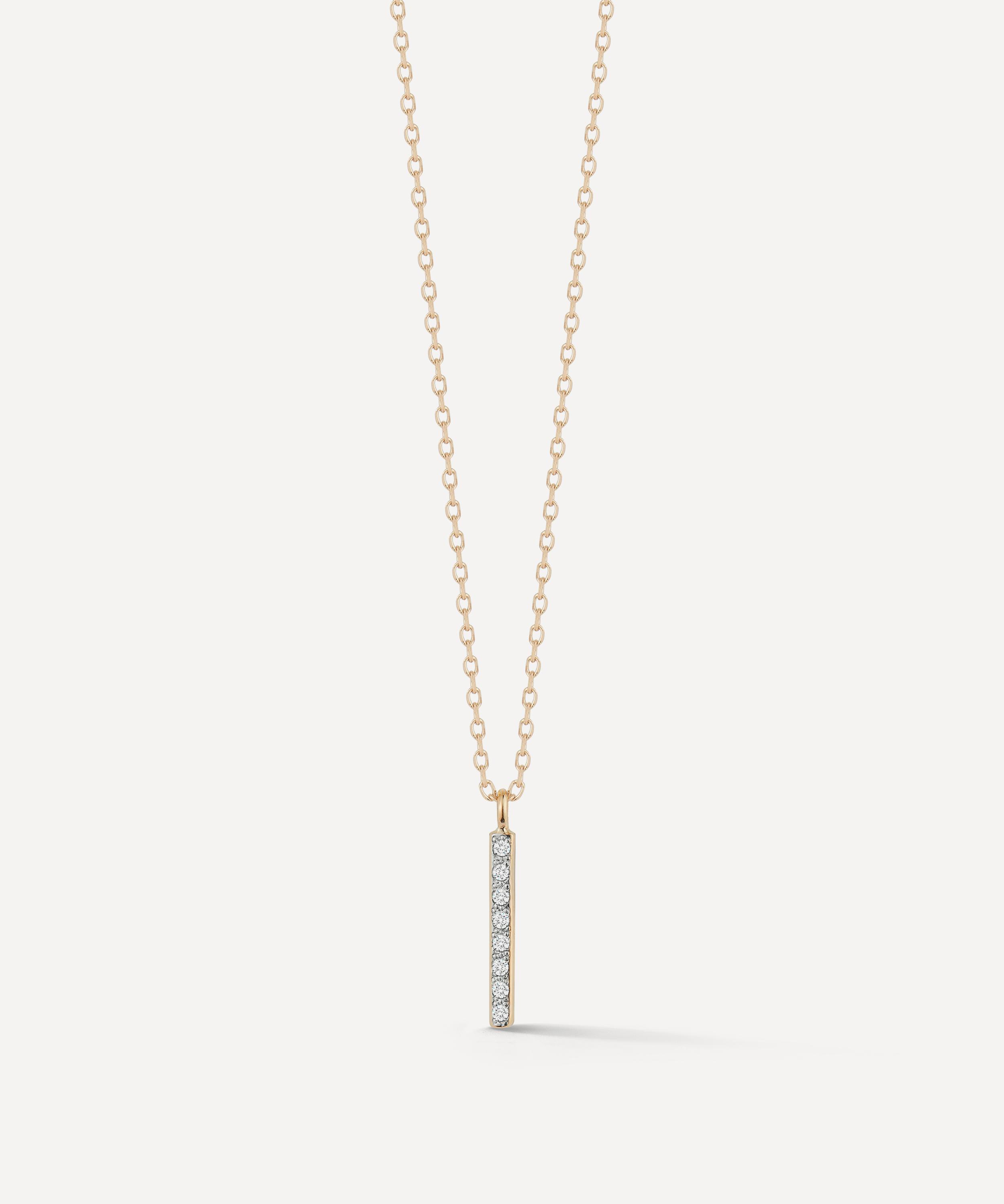 Add a subtle sparkle to elevate your ensemble with this sophisticated pendant necklace from Mateo. Crafted from 14ct gold, it features a fine cable chain and a diamond set bar pendant – it can be styled alone or layered.