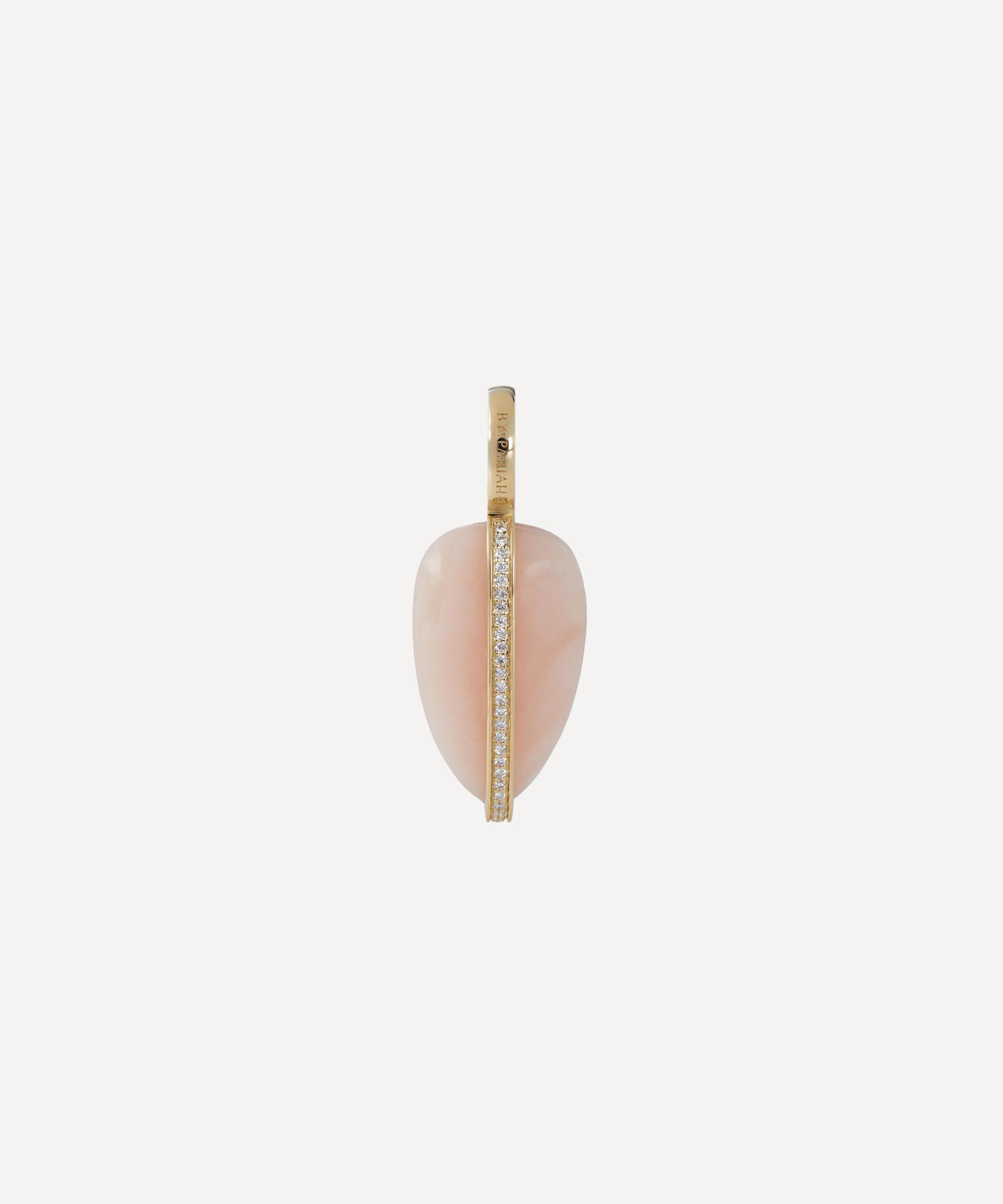 Epitomising elevated elegance, it features a hand-carved pink opal, adorned with a diamond set, 14ct gold filament cutting across the centre. Exemplifying the brand's seasonless approach to jewellery, try stacking several pendants together, with mixed-length chains to curate your own organic colour palette.