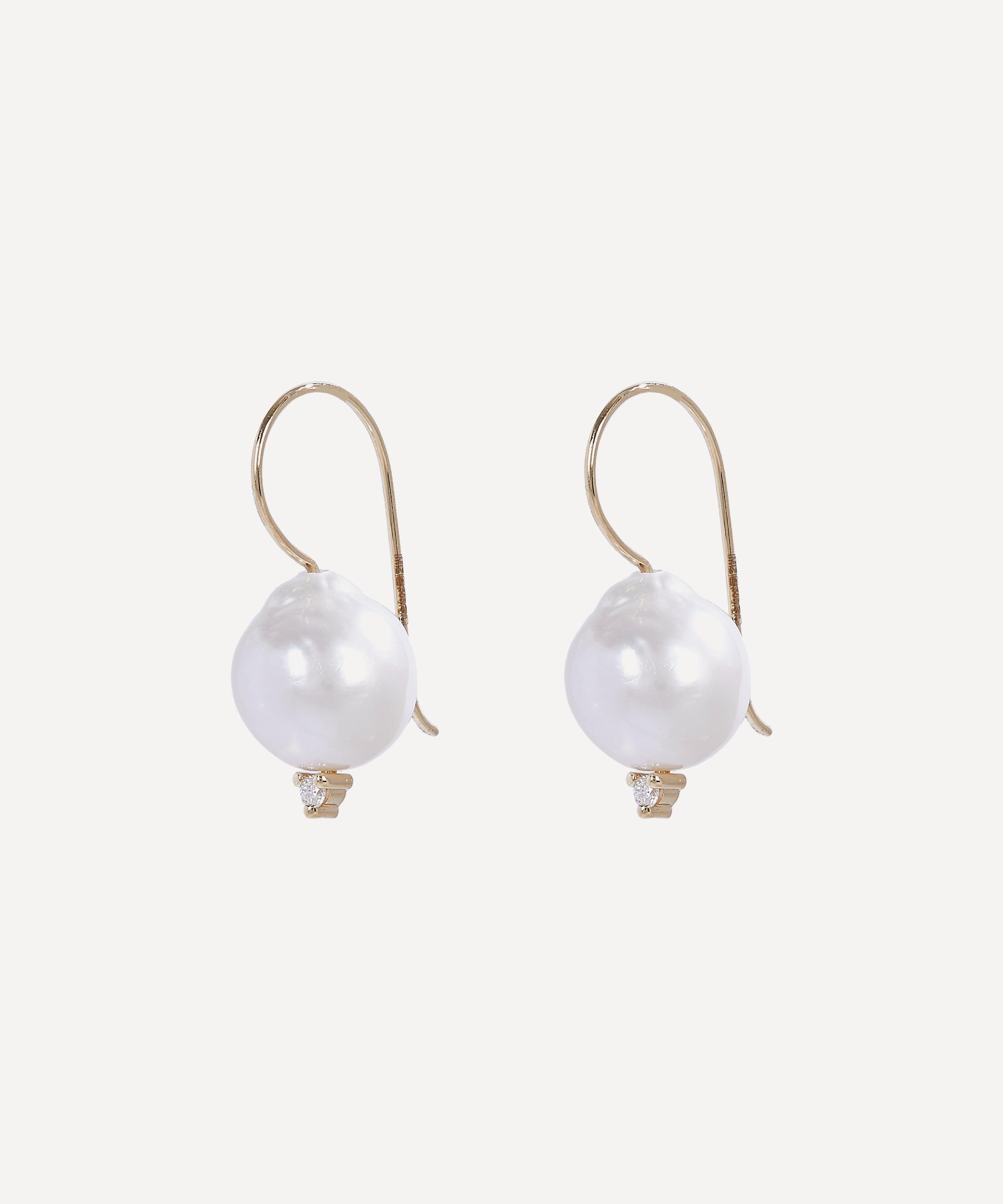 Designed to move and flow with the body, every Mizuki design is an expression of individuality characterised by gentle curves and the brand's signature sense of modern simplicity. Each of these drop earrings is formed of a 14 carat gold wire hook that descends into a lustrous freshwater pearl tipped with a tiny prong-set white diamond. Try teaming them with other studs and drops from the designer's endlessly feminine collections for an asymmetric curation with a complexion-brightening finish.