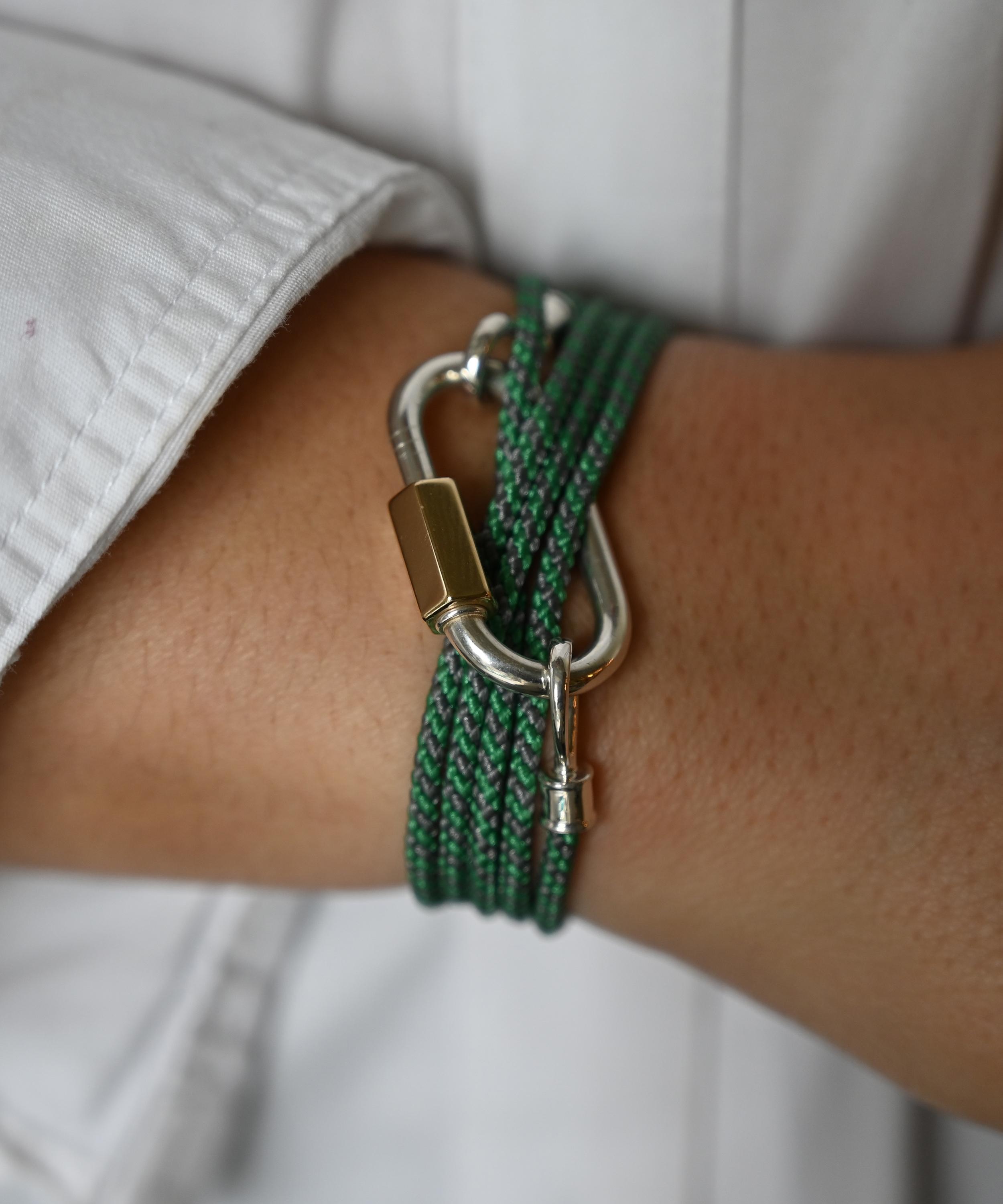 Expand your jewellery collection and curate an eye-catching stack with this versatile bracelet from Marla Aaron. Handmade from Dyneema – the world’s strongest fibre – this durable yet lightweight string features a green-grey braided design finished with a 14ct gold loop at each end – designed to be paired with one of the brand’s signature carabiner locks and charms. Spotlighting functional maximalism with a bold, yet refined look, it boasts endless styling possibilities. Wear it alone for a minimalist statement, or team it with chains from the brand to create your own bespoke stack.