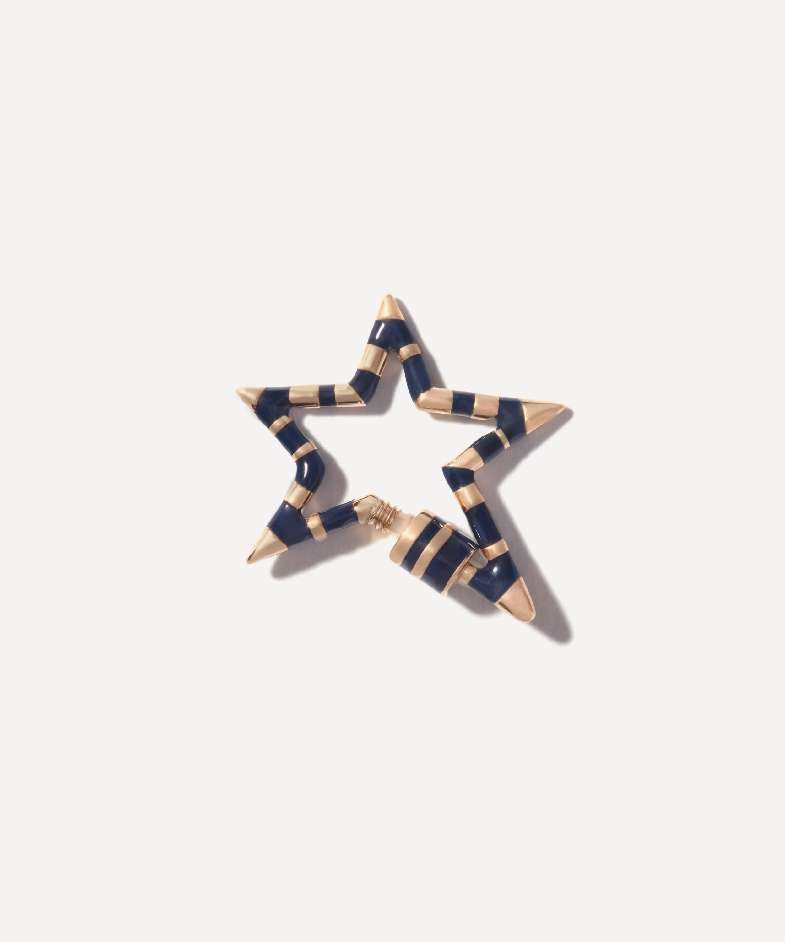 Complete your favourite chain from Marla Aaron with the brand’s playful Starlock clasp. Handmade from 14ct gold, it features Aaron’s signature carabiner lock, shaped into a star and decorated in navy-blue enamel stripes. Designed to be paired with one of the brand’s exceptional chains - it can be used as a connector, a clasp, or a charm holder. Spotlighting functional maximalism with a bold, yet refined look, it boasts endless styling possibilities, ideal for a necklace.