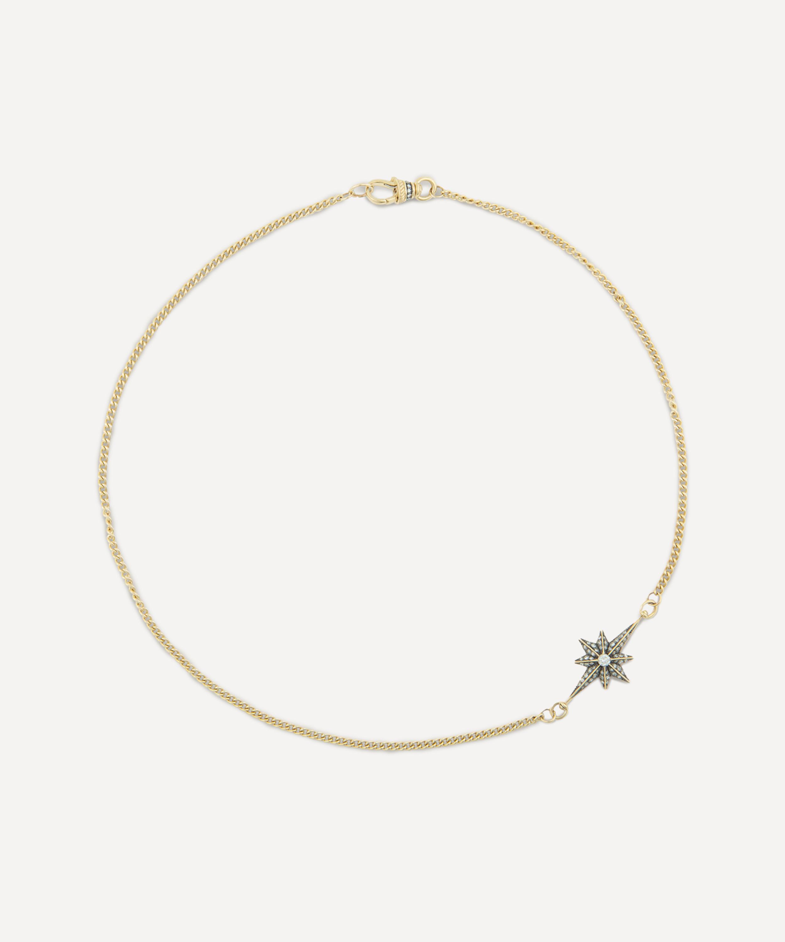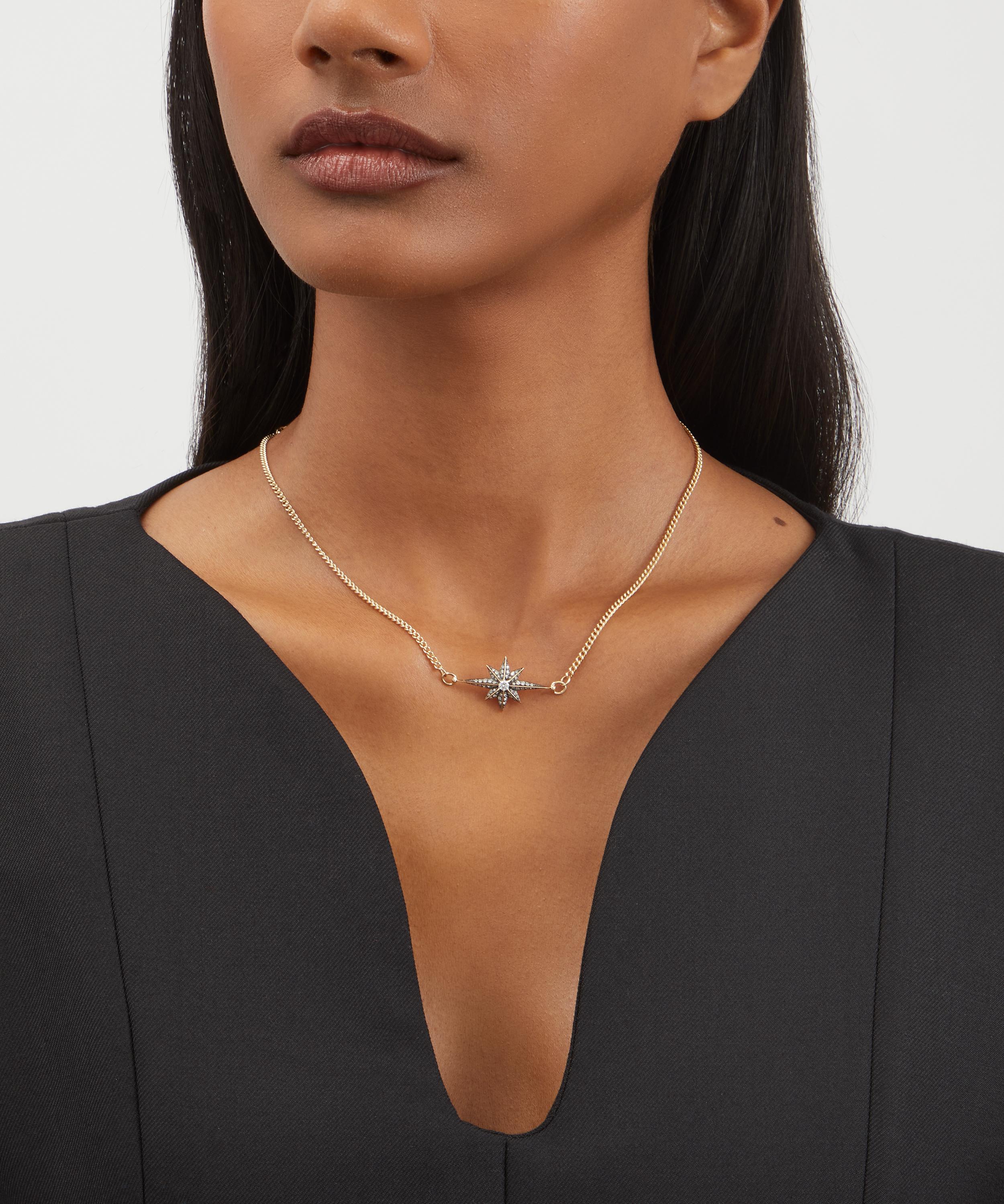 Crafted from 14ct gold, this chain exudes a sense of luxury and durability, while maintaining a refined, understated aesthetic. Its classic curb design, characterised by evenly sized round links and a mini star pendant adorned with a Victorian set diamond pavé atop antique finish black rhodium, reference and celebrates a vintage silhouette with a modern sentiment, making it a versatile addition to any jewellery collection. Weather worn alone or layered, it will instantly draw attention to both casual and formal looks with its subtle allure.