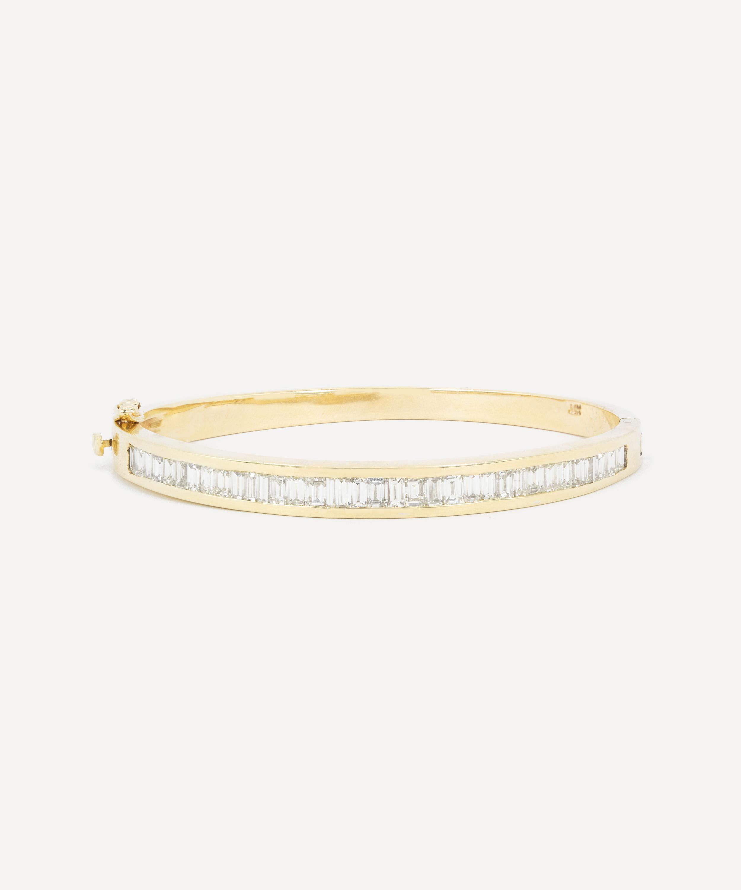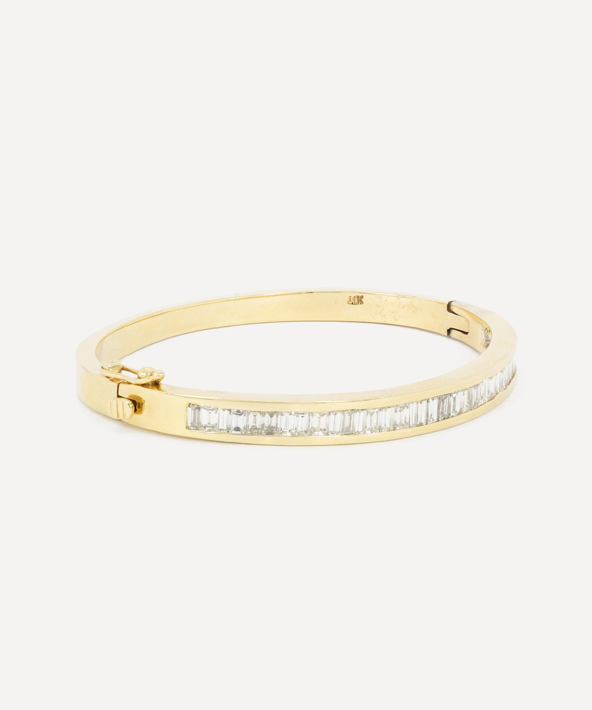 Add some sparkle to your everyday wrist stack with this vintage diamond bangle bracelet from Kojis. Crafted from 14ct gold, it features an oval silhouette, adorned with baguette cut diamonds in a channel setting.
