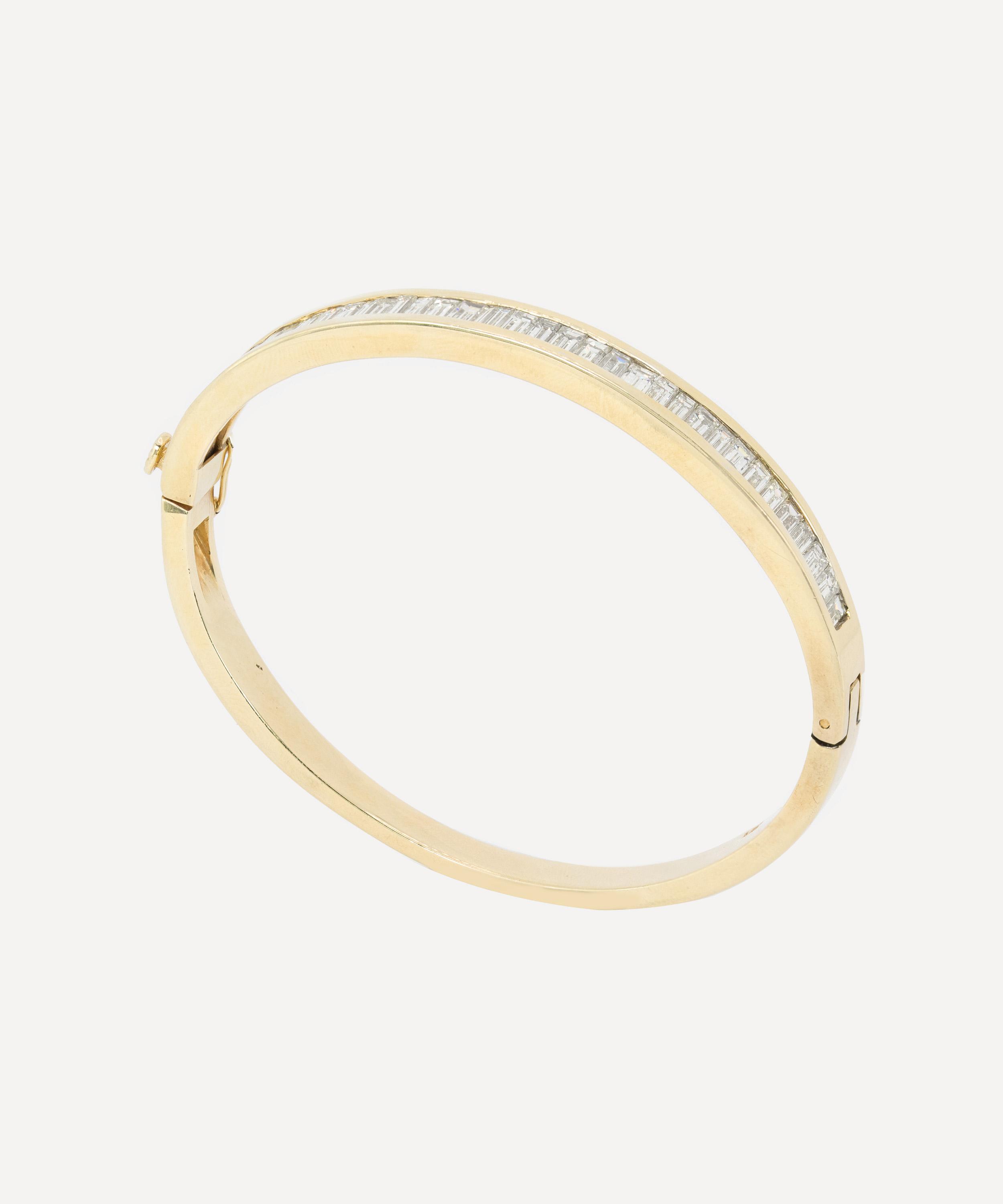 14ct Gold Vintage Baguette Cut Diamond Bangle Bracelet
