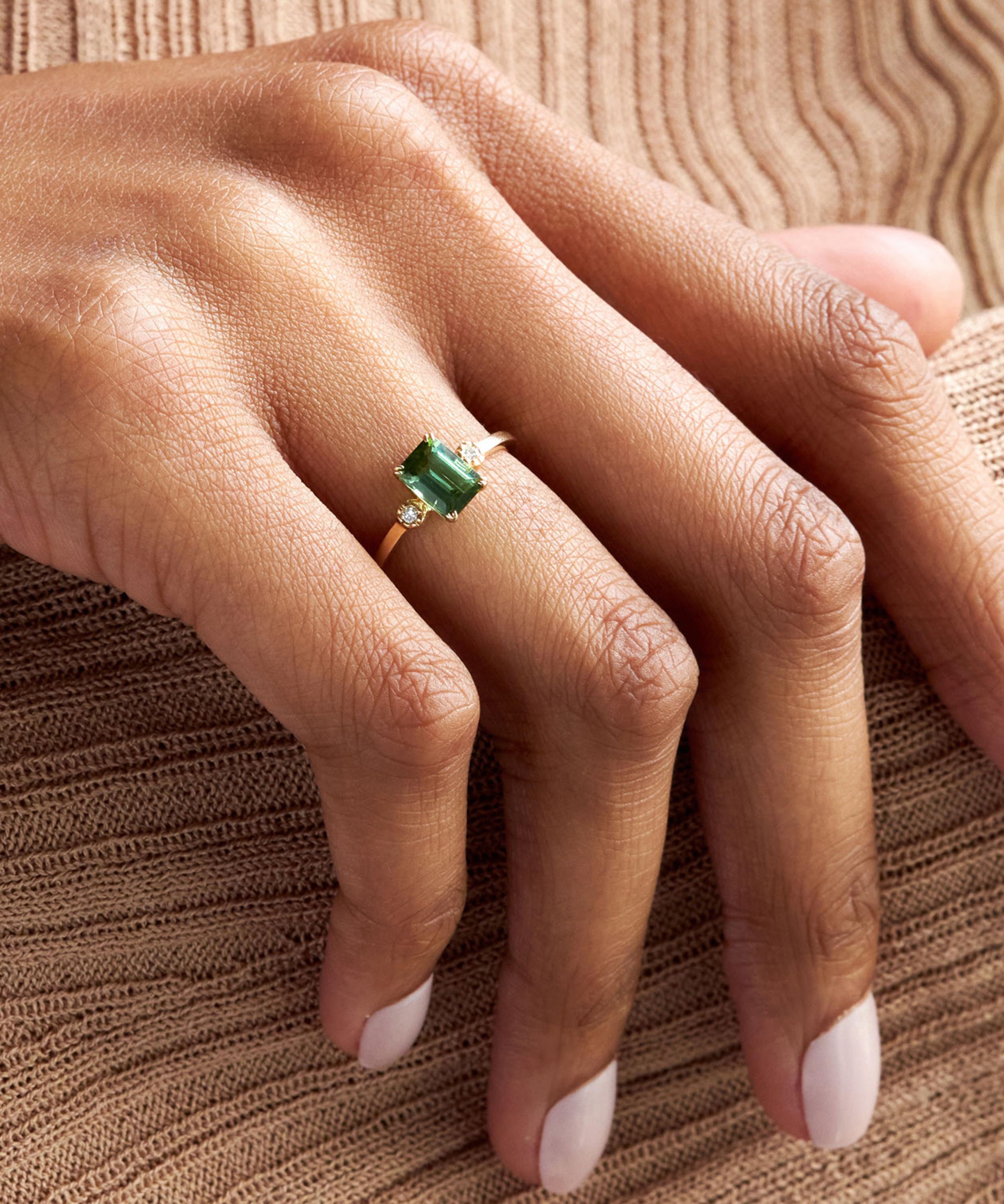 - Emerald-cut Tourmaline centre stone